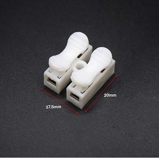 Product Description1. Upgrade your wiring projects with these 20pcs 2-Way Quick Push Type Lock Electric Wire Connectors.2. These screwless connectors offer a hassle-free solution for securely joining cables and wires.3. Simply push the wires into the connector terminals, and they'll lock in place, ensuring a reliable electrical connection.4. Ideal for various applications like home renovations, electronics repairs, or DIY projects, these connectors save you time and effort.5. With their compact size and user-friendly design, you can easily work in tight spaces. 6. Streamline your wiring tasks and enjoy the convenience of these quick push-type lock electric wire connectors.