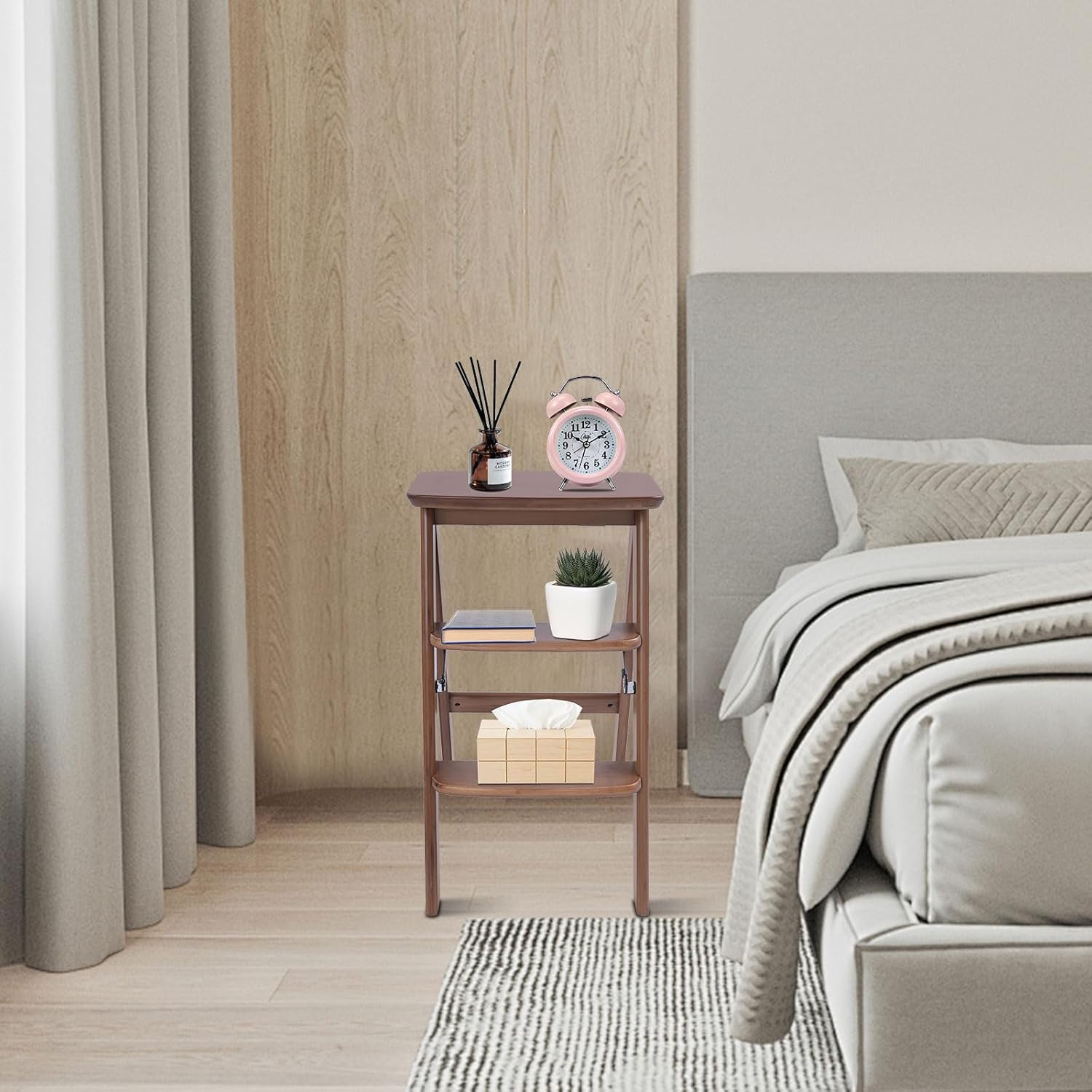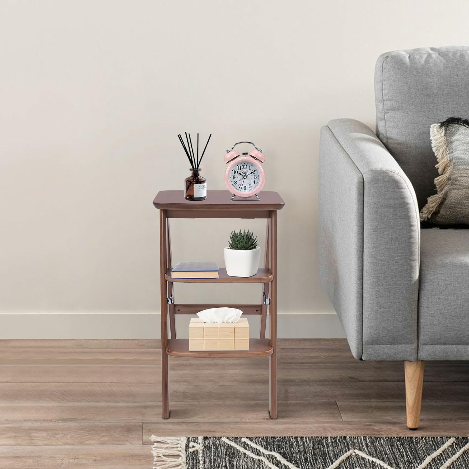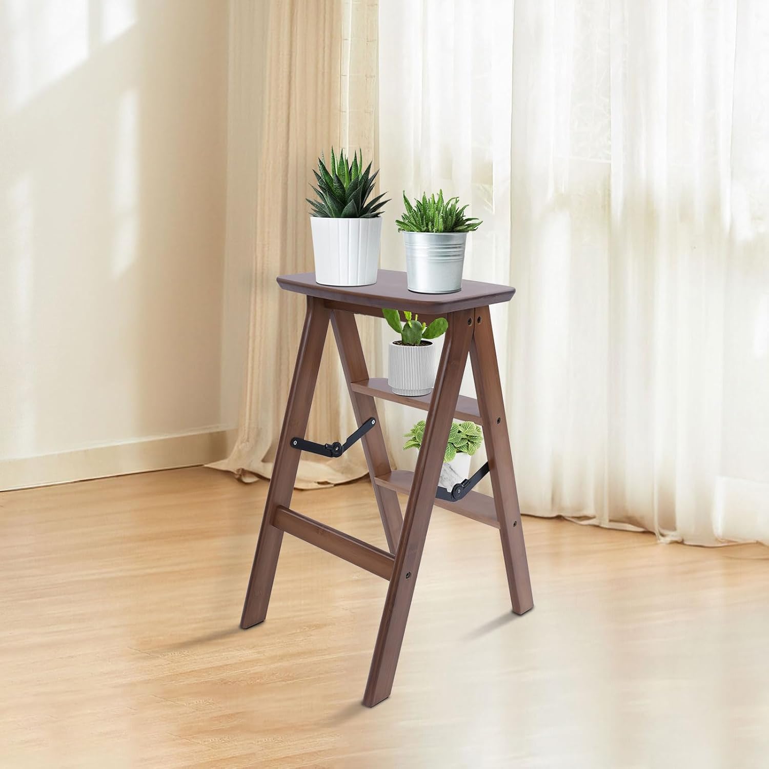 ApplicationIt is suitable for kitchens, bedrooms, offices, and libraries. It can be used as a bookshelf, side table, planter, counter chair, and storage shelf.SpecificationMaterial: BambooAssembly Required: NoMounting Type: FreestandingNumber of Steps: 3Each Step Spacing: 19cm/7.5inTop Pedal Size(W*L): 24*38cm/9.4*15inBase Size(L*W): 43*35.5cm/ 16.9*14 inProduct Height: 18.5cm/7.3in, 63.5cm/25inPackage Size: 76*44*26cm/29.92*17.32*10.24inLoad Capacity: About 150kg/330lbsGross Weight: 11kg/24.25lbsNet Weight: 10.45kg/23.04lbsPackage Included1* Step Stool