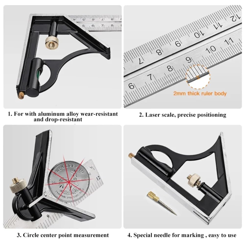 300/600mm 3 in 1 Combination Angle Ruler Set Engineer Adjustable Multi Combination Right Square Protractor Measuring Tool Set (A)