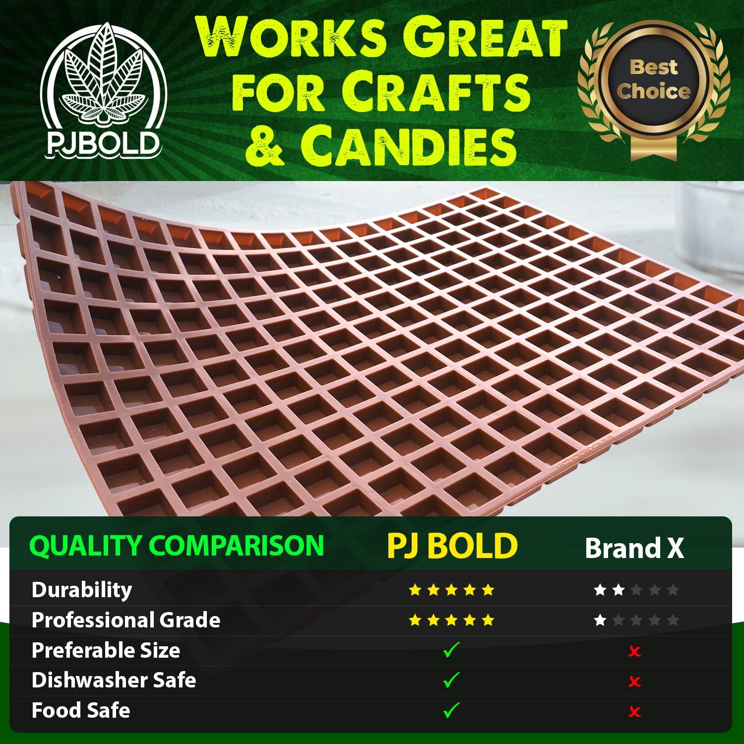 • COMMERCIAL GRADE products designed for commercial production with hand pouring or universal depsitors. Non stick silicone results in easy release candies every time.