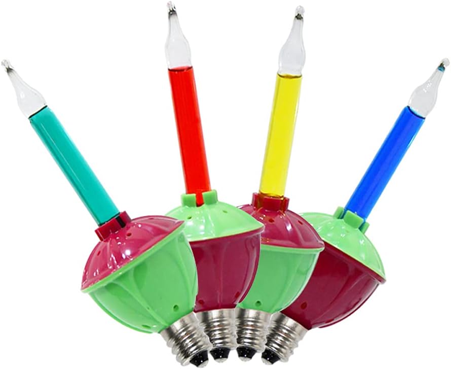 Multicolor Bubble Lights Replacement Bulbs Specifications: Power Consumption: 5 watt Voltage: 120V Material: Glass, Plastic Color: Multicolor Bulbs Quantity: 4 pcs Socket Base Type: E12/ C7 Base 1,000 hours lifespan (average) Special Features: IP44 Water Resistant If you have any quality problems, please contact us directly!
