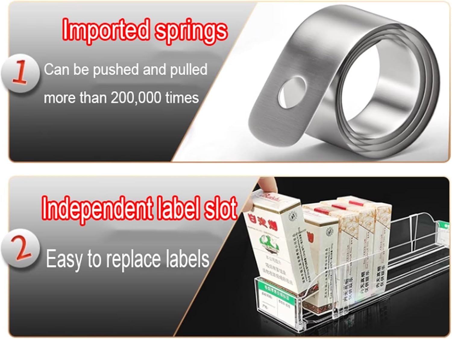 Retail Shelving Pusher:Introducing our Acrylic Ladder-Shaped Cigarette Rack with Automatic Pusher - the perfect solution for organizing your retail space while enhancing its aesthetic appeal. This innovative display stand is designed for convenience and efficiency, making it an essential accessory for store owners and enthusiasts alike. **Key Features:**- **Clear Visibility:** The highly transparent acrylic design allows customers to easily view your product selection, enhancing their shopping experience. The automatic pusher feature ensures that products are always presented neatly and are easily accessible, effectively reducing clutter. - **Durable Construction:** Crafted from high-quality acrylic, this cigarette rack is resistant to breakage and deformation, promising longevity and reliability. This durability translates to cost savings and increased economic efficiency for your business.- **Low Maintenance:** Keeping your display stand in pristine condition is simple. Just wipe the surface with a soft, clean cloth for daily upkeep, allowing your products to shine without the hassle of extensive cleaning routines. **Specifications:**- **Name:** Display Stand- **Material:** Acrylic- **Dimensions:** Width of 29 cm (11.4 inches), available in 44 different sizes to fit your specific needs. **Important Notes:**1. Please allow for a slight size difference of 1 to 3 cm due to manual measurement.2. Product images are for reference only; actual colors may vary due to lighting and screen resolution.3. Customer Service: We value your inquiries and aim to respond within 24 hours, ensuring you have a seamless shopping experience.Elevate your retail display with our Acrylic Ladder-Shaped Cigarette Rack today and enjoy the perfect blend of style and functionality!