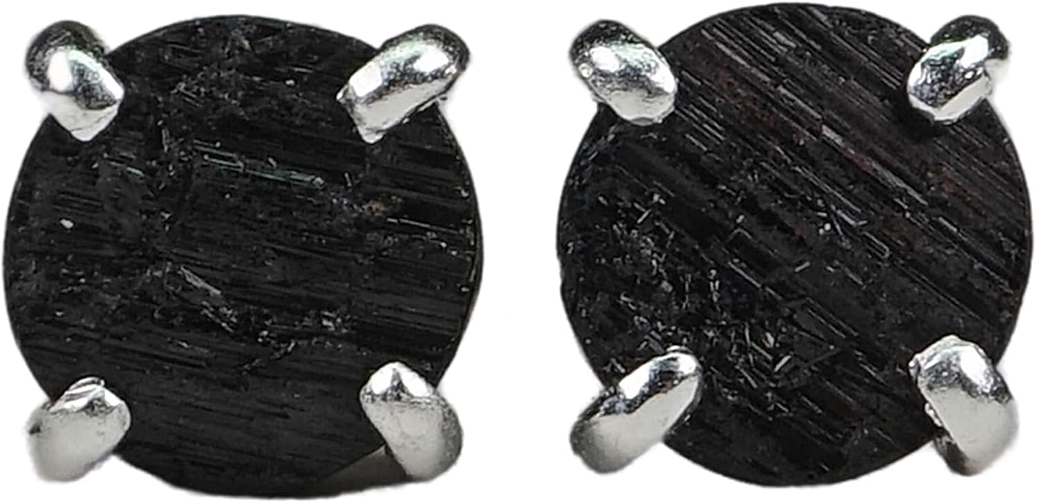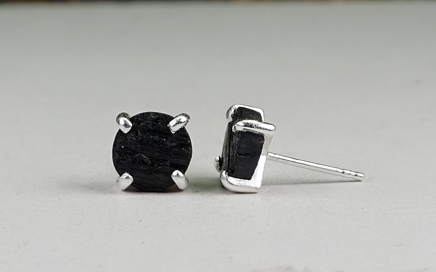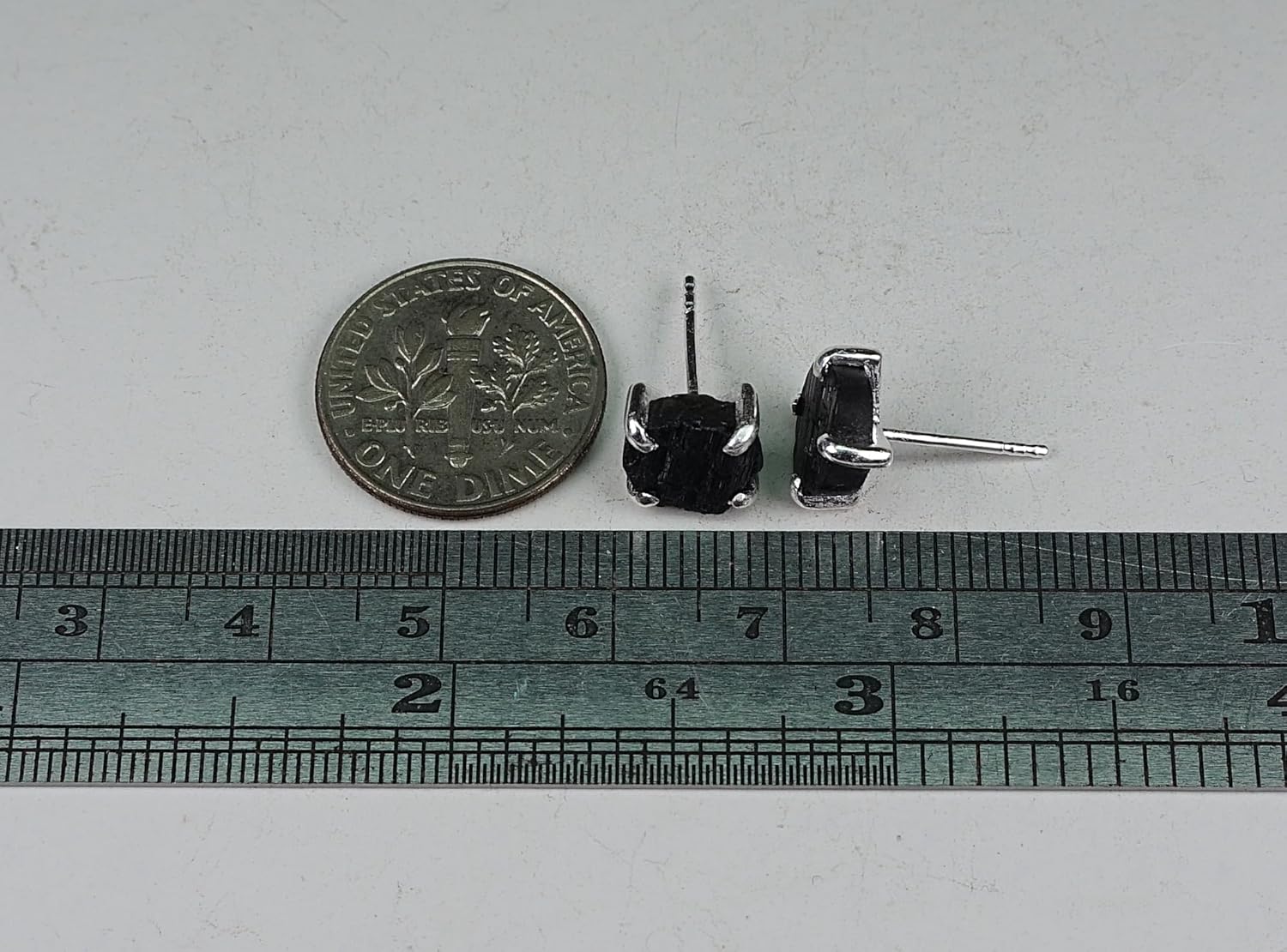 Beautiful Raw Black Tourmaline Sterling Silver Stud Earrings.