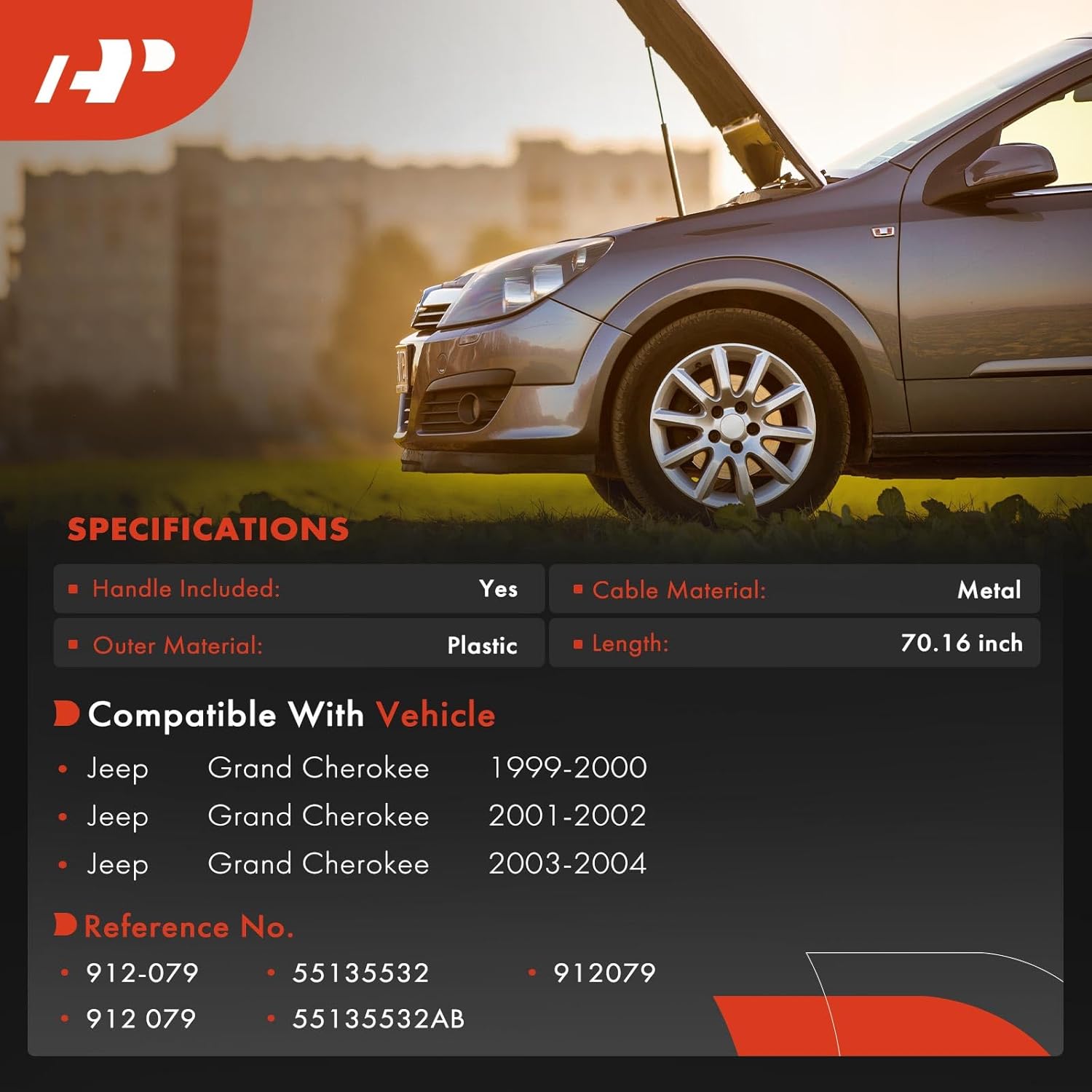 A-Premium Front Hood Latch Release Cable with Handle Compatible with Jeep Grand Cherokee 1999-2004, 70.16 inch, Replace# 55135532AB