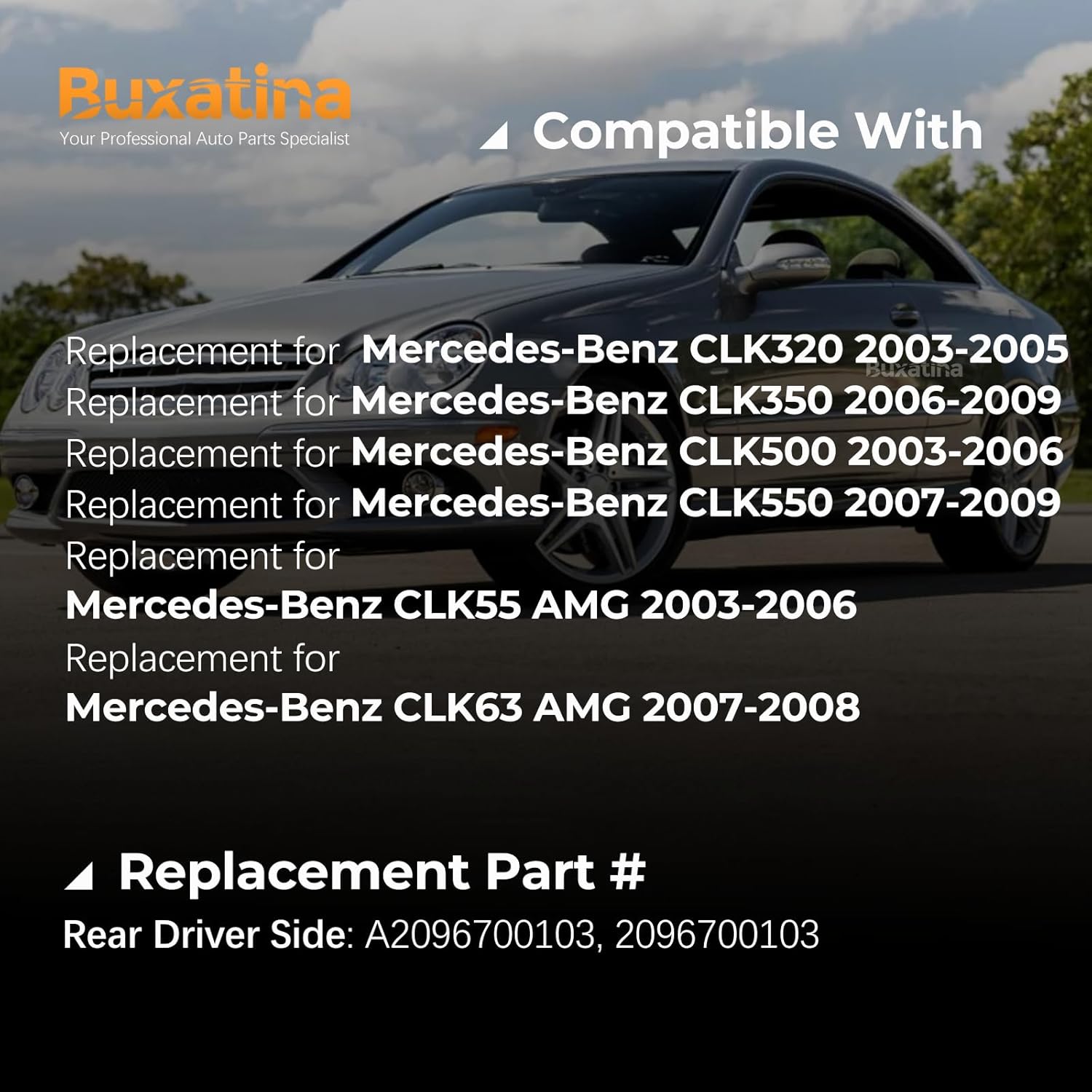 【COMPATIBLE WITH】Replacement for Mercedes-Benz CLK320 2003-2005;Replacement for Mercedes-Benz CLK350 2006-2009;Replacement for Mercedes-Benz CLK500 2003-2006;Replacement for Mercedes-Benz CLK550 2007-2009;Replacement for Mercedes-Benz CLK55 AMG 2003-2006;Replacement for Mercedes-Benz CLK63 AMG 2007-2008;【REPLACEMENT PART NUMBER】A2096700103, 2096700103【INSTALLATION POSITION & PRECISE FITS】Left Rear Window Regulator. Engineered within strict tolerances to directly replace your old or broken Left Rear Window Regulator. Accepted provide VIN to verify the compatibility.Notice: Please use the appropriate service manual for the operation. If you do not have an installation manual or are not skilled enough to install this part, it is recommended that you seek help from a qualified mechanic.【PACKAGE LIST & SPECIFICATION】1 pcs x Driver Side Rear Window Regulator【REST ASSURED OF QUALITY】This Left Rear Window Regulator is factory p-roven. We will be responsible for dealing with them if the product has any quality problems within 1 year.