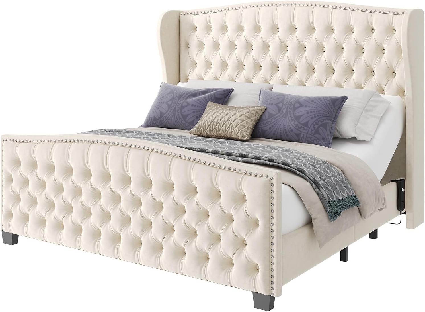 | Additional Features | Adjustable Base, Velvet Upholstered Bed, Wingback Headboard |