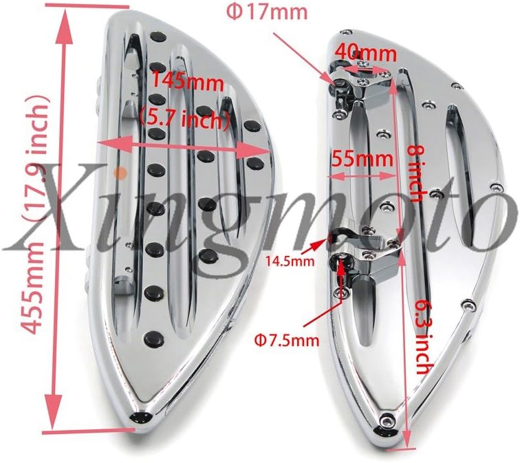 Attributes: 2 Pieces of billet aluminum to create a cutting-edge see-through design Adds exceptional style and comfort to your bike Instantly upgrade your bike impression. Easy Installation. Color: Chrome Material: Billet CNC Aluminum Fitment: 1986-2015 for Harley Touring/Softail FL/ Dyna FLD