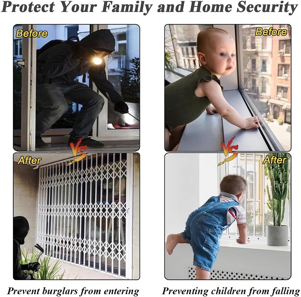 Enhance your home security with our innovative foldable security window bars, designed to provide peace of mind for families with children and pets. Are you concerned about potential break-ins or accidental falls? Our collapsible design offers a reliable solution for safeguarding your windows while maintaining a stylish appearance.Key Features:- Smooth and silent pulleys ensure quiet operation, allowing you to open and close the bars effortlessly.- The foldable structure saves space and offers an unobstructed view, perfect for any room in your home.- Our retractable modular burglar bars can be easily adjusted to fit your needs, making them versatile for both indoor and outdoor installations.- Designed with a spacing of 11 cm (4 3/10 inch) to effectively prevent falls while ensuring visibility.- Crafted from durable aluminum alloy, these security bars withstand various weather conditions and are built to last.- The openable egress function allows for quick escape during emergencies, particularly essential for bedrooms and sleeping areas.- Installation is straightforward with included mounting accessories, suitable for different window types including inward and outward opening windows.Specifications:- Material: Aluminum Alloy- Features: Silent, Anti-theft, Invisible, Foldable- Color: Dark Gray- Lockable: Yes- Customizable Width and Length- Grille Spacing: 11 cm (4 3/10 inch)- Ideal for: Living rooms, kitchens, balconies, bedrooms, bathrooms, and more.Measuring Your Windows:1. Measure the width at the top, center, and bottom of the window opening, using the smallest measurement.2. Measure the height on the left, center, and right sides of the window opening, again using the smallest measurement.Package includes:1× Push-pull Window Safety Guards (with hardware accessories)Invest in your family's safety today with our foldable se...