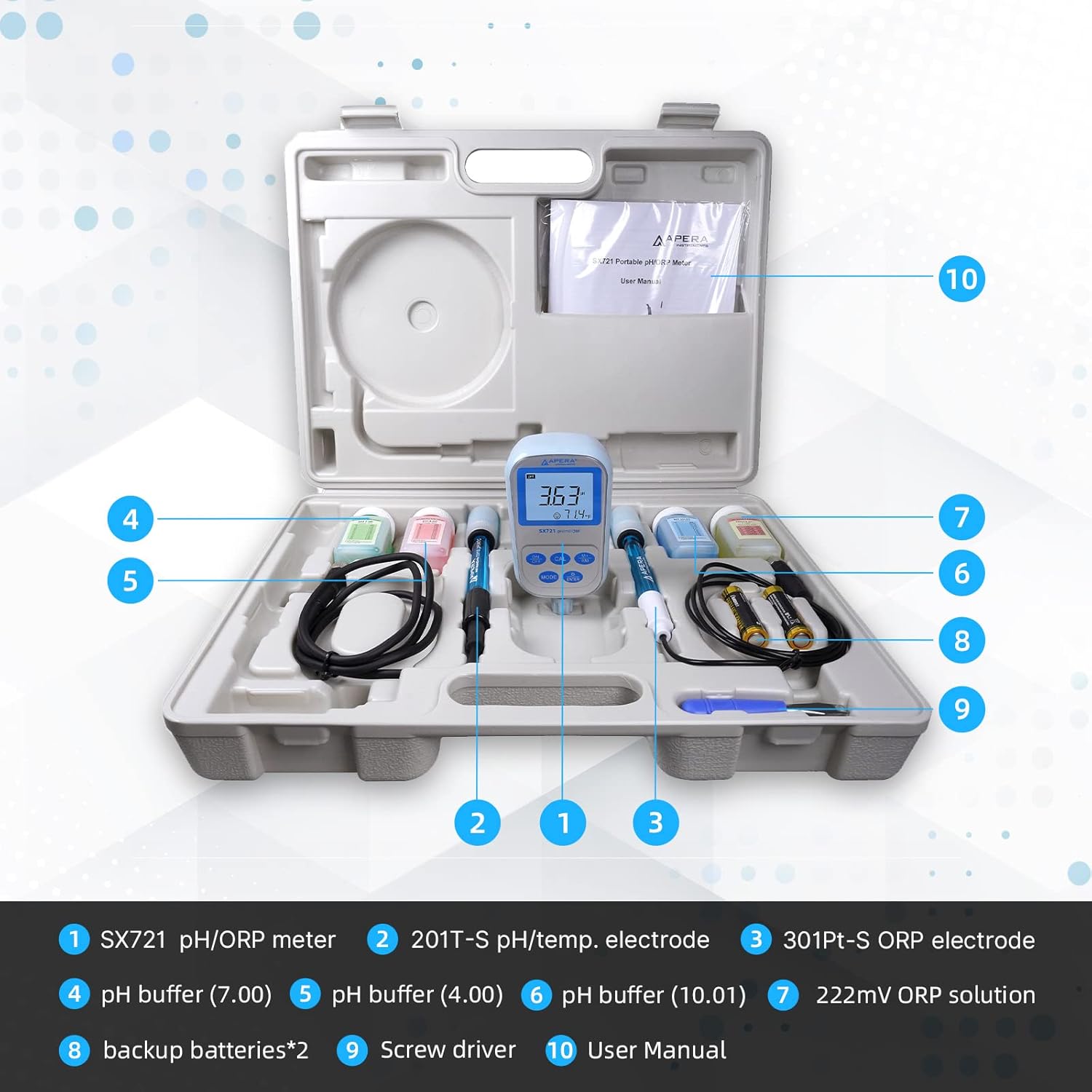 Apera SX731 is designed for lab-grade measurement of pH and ORP. It is suitable for general water solutions’ applications such as water treatment, groundwater, surface water, hydroponics, environmental monitoring, aquaculture, aquarium, beverage making, etc.