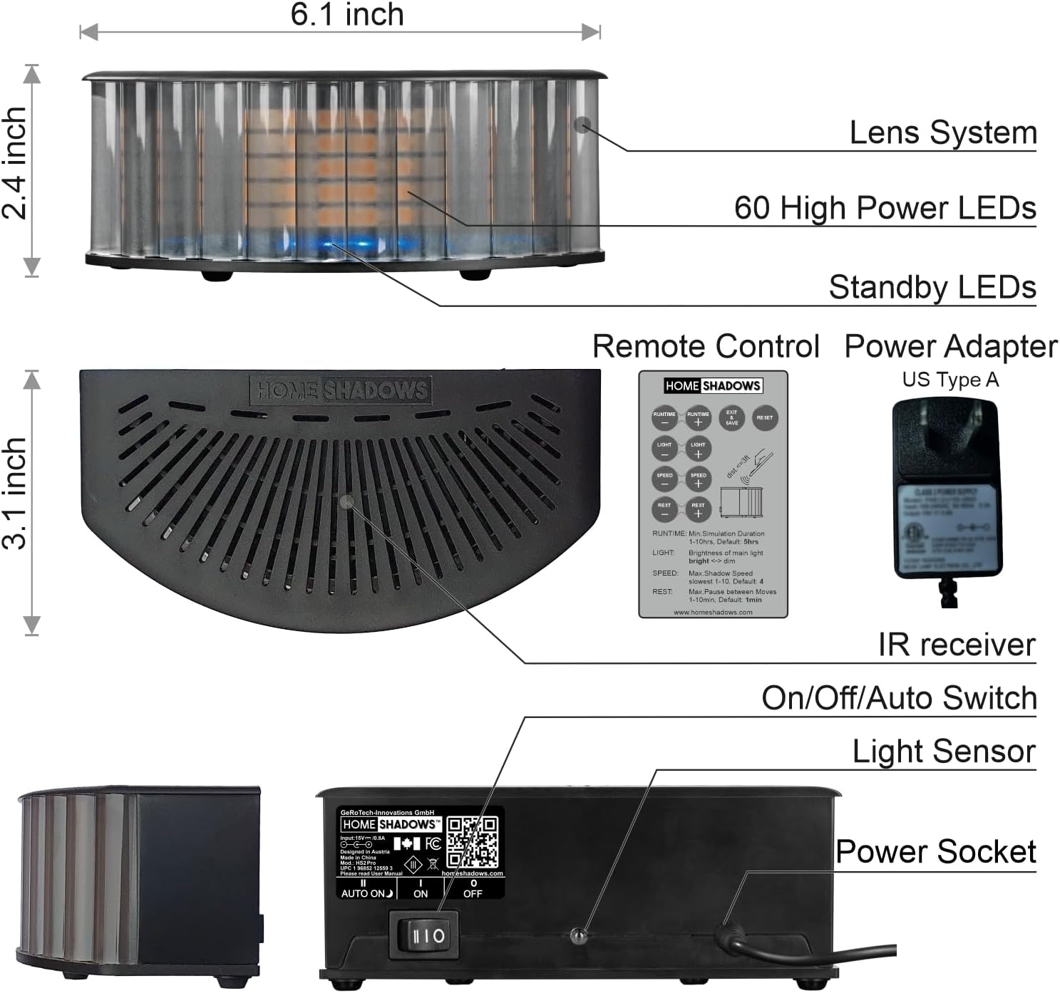 | Included Components | HOMESHADOWS, Instruction Manual, Power Adapter USA/CA plug type A |