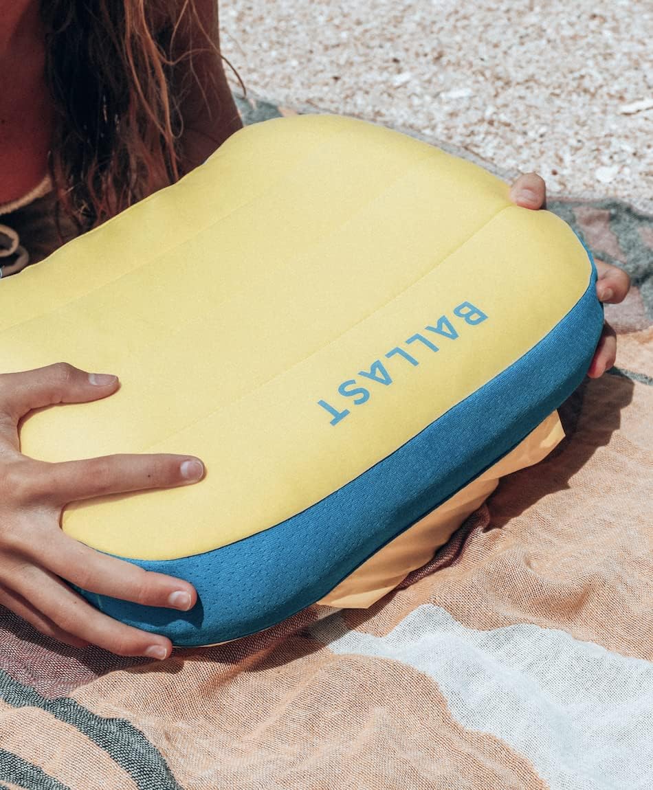 • BALLAST BEACH PILLOW - The Ballast Pillow is a plush, weather-resistant, inflatable pillow that won't blow away on a windy beach or campsite.