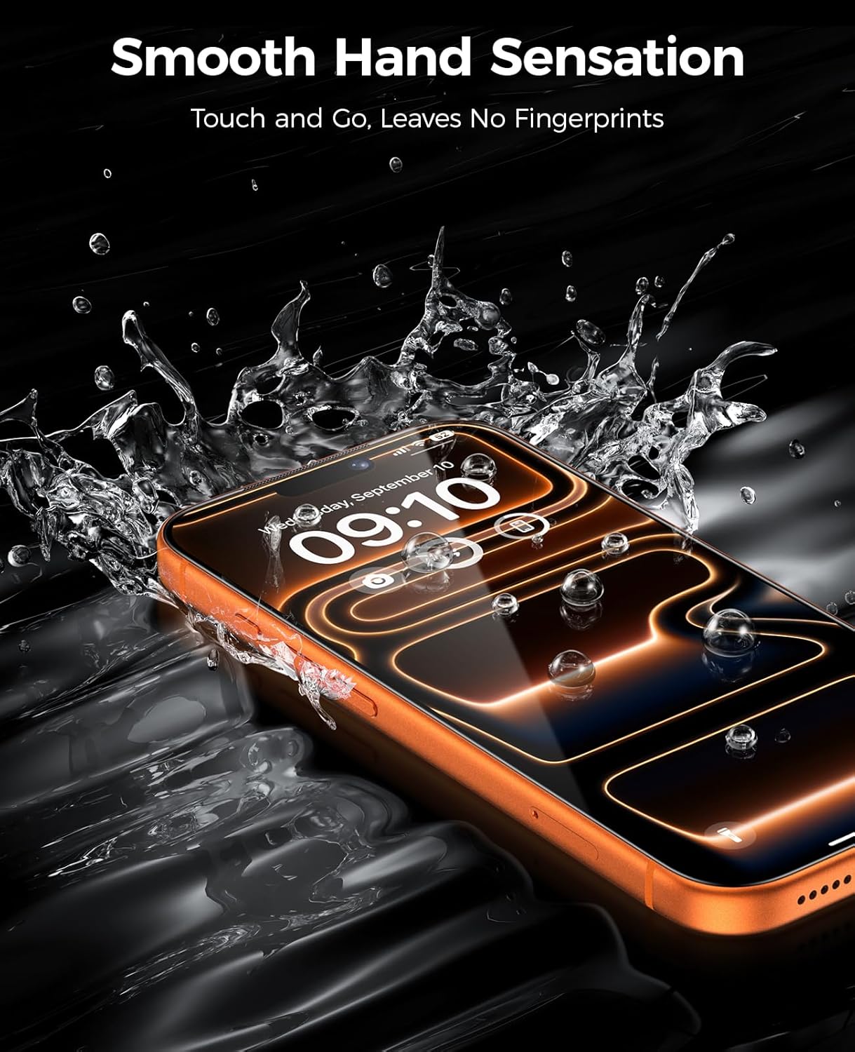• 【Premium 9H Tempered Glass Shield】Made from the same glass material used in Apple’s original displays, this iPhone 17 Pro Max screen protector features high-strength 9H tempered glass with a reinforced structure and strengthened edges to reduce chipping and cracking, keeping your screen safer and more durable over time.