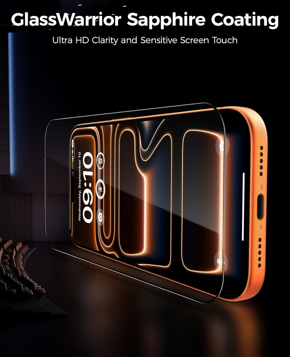 • 【Extreme Scratch & Impact Resistance】 Engineered for the iPhone 17 Pro Max, the GlassWarrior AR protector is built with a multi-layer nanostructure and has passed 10,000+ scratch tests and a 25 kg pressure test. Its upgraded 3D curved edges enhance drop and shatter resistance, helping your screen stay pristine even in tough situations.