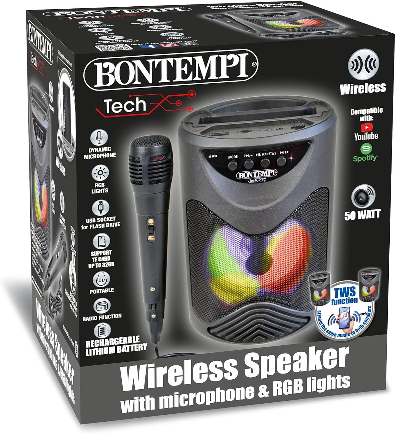 • Bright effects: With dynamic lighting effects, the karaoke adds a touch of show and fun, turning the room into a bright party.