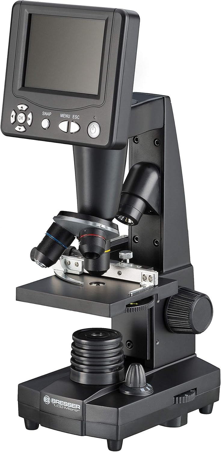 Product description Forget about all the mainstream microscopes that don’t allow you to observe in group or to save your observations on your SD card. Here’s a brand new technology LCD Microscopes that you can observe the objects on its bright screen. Let’s say you are a lecturer, you can either show your students the objects on the LCD screen or connect your device to the computer to make observations. Or you may be a parent who wants their kid to start learning by practicing. This device is just for you. It’s science time for everyone! Amazon.com The Bresser LCD microscope makes it possible for multiple people to view magnified images and eliminates the discomfort of viewing through a small eyepiece by projecting the image into a large 3.5-inch liquid crystal monitor. Capable of transmitted light and limited light microscopy, the LCD microscope magnifies images from 40 to 400x and offers up to 1600x magnification when digital zoom is applied. Thanks to an integrated SD card slot and a USB port you can capture your magnified images as jpegs and download them to the computer. The Bresser LCD Microscope comes with a carrying case, a strap, and multiple accessories included.Features and Specifications:3.5-inch/8.9-centimeter liquid crystal monitor Use for transmitted light or limited light microscopy Magnification: 40 to 400x Digital zoom: 1600x Two megapixal Interpolated 3.2 megapixal Two megapixal CMOS Sensor Dimensions: 10 by 8.2 by 16 inches (LxWxH) SD card slot USB port