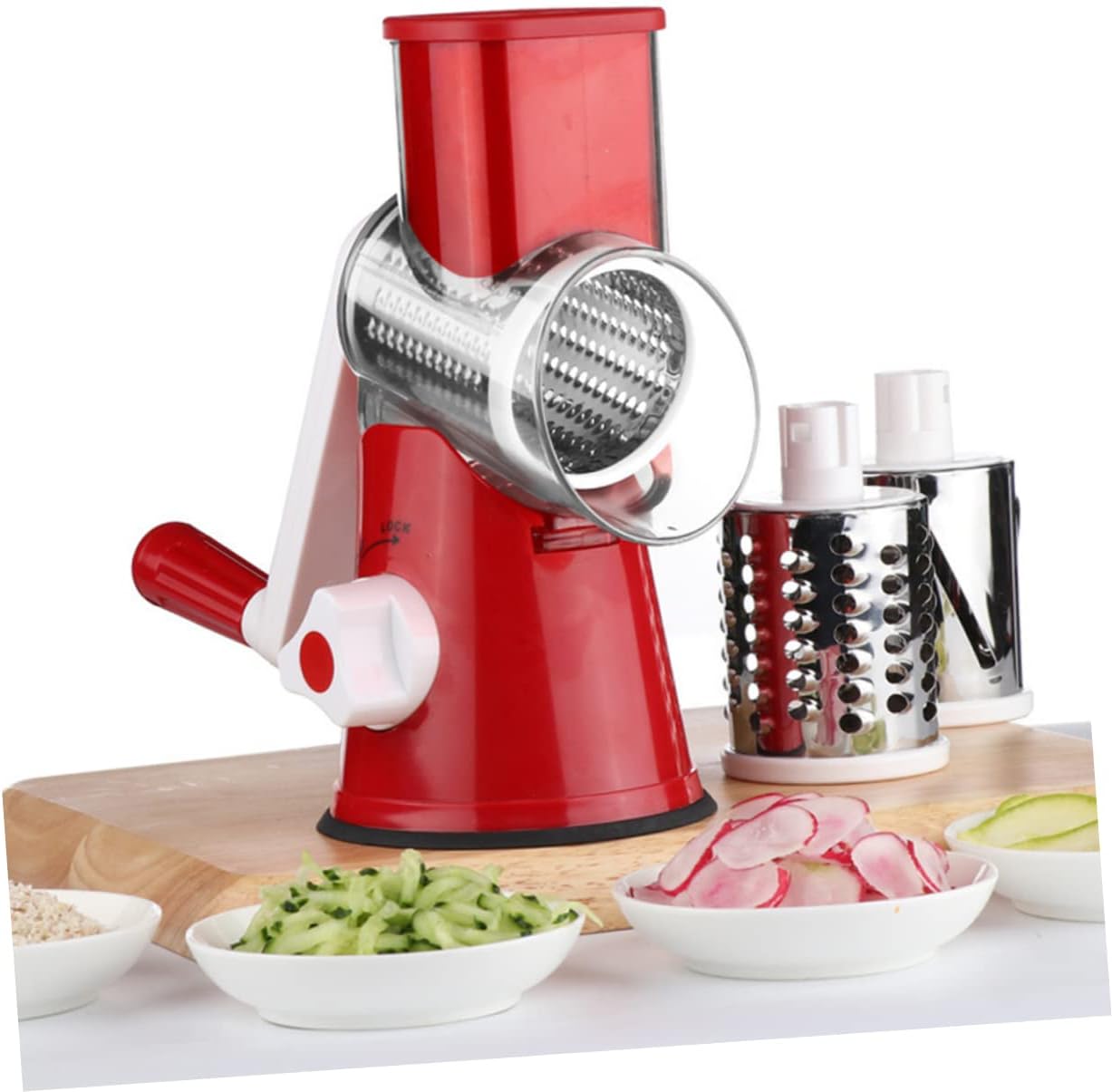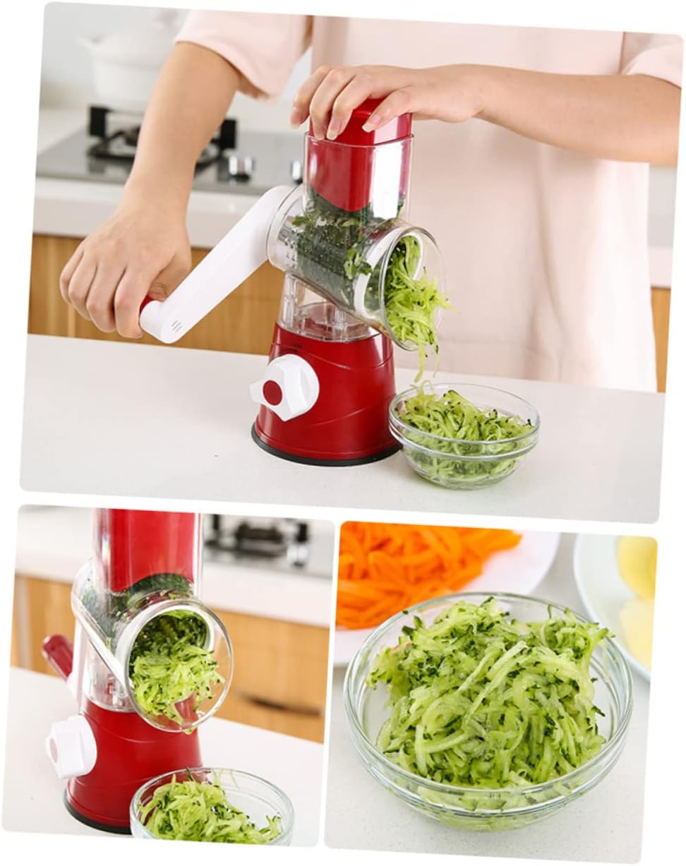Cabilock Multifunctional Hand Crank Vegetable Slicer with Suction Cup Base Efficient Cutter for Potatoes Carrots Cucumbers Easy to Clean Kitchen Tool Red