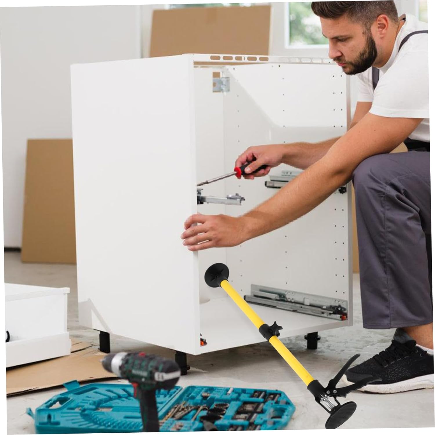 Cabinet Jack Support for Easy Installation Telescoping Design One-Hand Compact Tool for Heavy Loads up for Cabinet Assembly and Door Frames