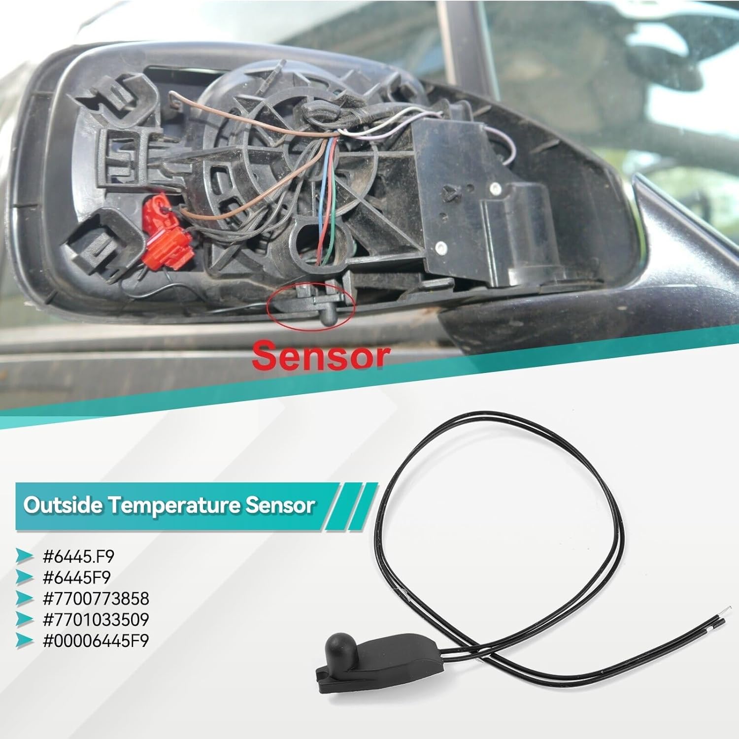 Material : The outdoor air sensor is made of high-quality materials with excellent heat and cold resistance, ensuring long-term reliable operation of the sensor in various weather conditionsAccurate measurement : capable of quickly and accurately detecting the external environmental temperature, providing real-time accurate data for the climate control system, and helping to maintain a comfortable temperature inside the carAccurate Temperature Monitoring for Safety & Comfort:Provides critical outside air temperature data to your vehicle's HVAC system and dashboard display, ensuring optimal cabin comfort and providing early warning of potential icy road conditions .Engineered for high sensitivity and fast response, delivering reliable readings to help maintain your vehicle's performance and safety.Durable & Weatherproof Construction : Built to withstand harsh automotive environments, with an operational temperature range of -22°F to 176°F (-30°C to 80°C) . The housing offers excellent resistance to moisture, road salt, and vibrations.Features a robust, compact design and sealed connector to ensure long-term reliability and performance in all seasons.
