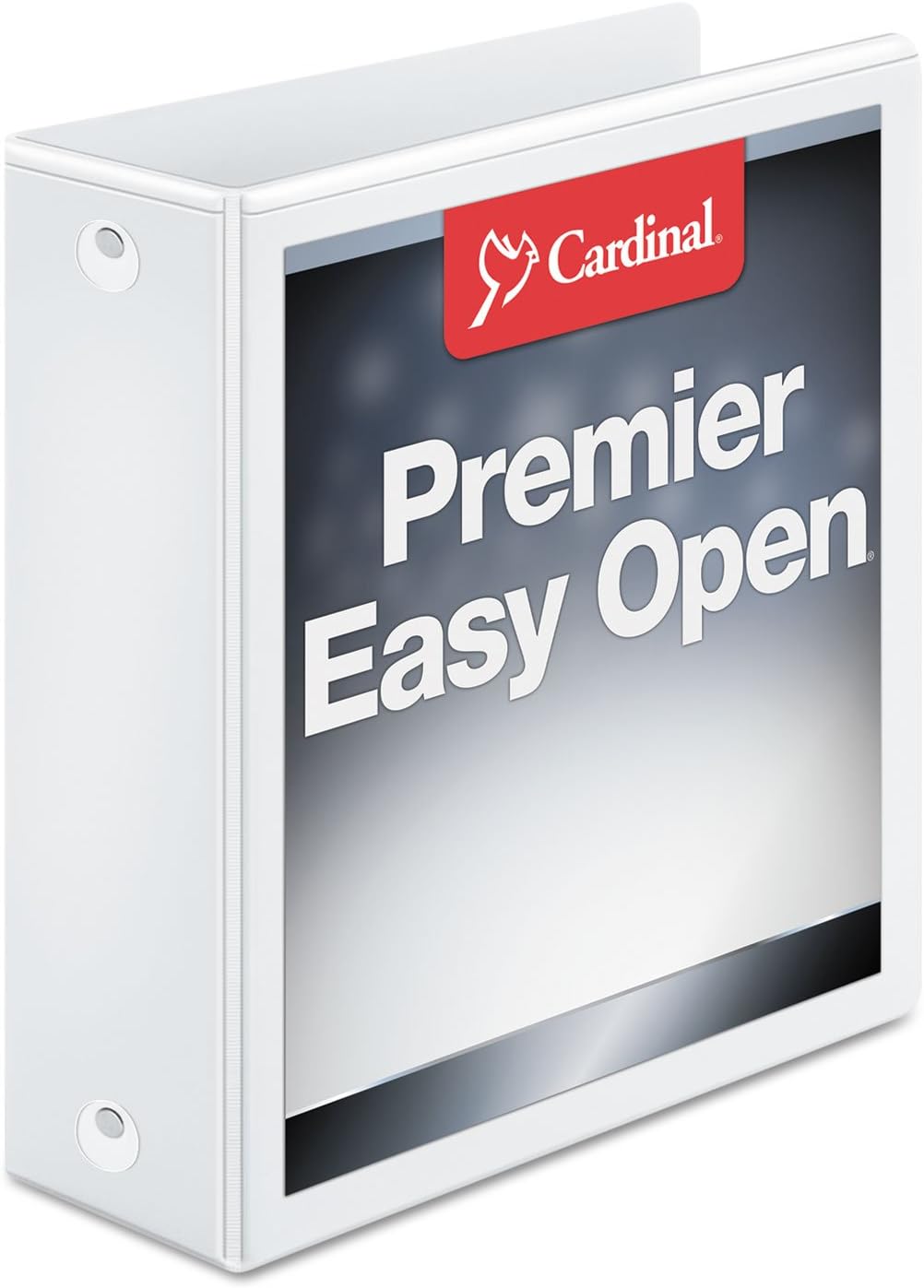Cardinal Premier binders make stunning presentations and are a durable, easy-to-use option over the basic 3-ring binder. These Premier 4-inch binders have Slant-D rings that hold more paper than your standard round ring binder—up to 880 sheets each. ClearVue binder covers let you personalize your notebook on all 3 sides, front, back and spine. Inserts slip easily behind glare-free overlays so your message shines through and is easy to replace. Our Easy Open ONE-TOUCH rings open, close and lock with one simple motion. Whether you’re loading and reorganizing one binder for school or a dozen for presentations, Premier binders save you considerable time and effort. Look for this ergonomic, no-pinch upgrade over the standard binders on your home office or school supplies list. Every Cardinal binder is reinforced to last with XtraLife cover hinges that resist tearing or splitting at the seams from normal daily use. Covers are made of non-stick material that resists ink and toner transfer for clean, smudge-free covers. Binders are archival-safe for documents and photos. Four clear interior binder pockets make a neat place to tuck handouts, small papers or unpunched work. Add binder dividers for total 3 ring binder organization. 4 inch Binder. 880-Sheet capacity. White.