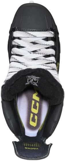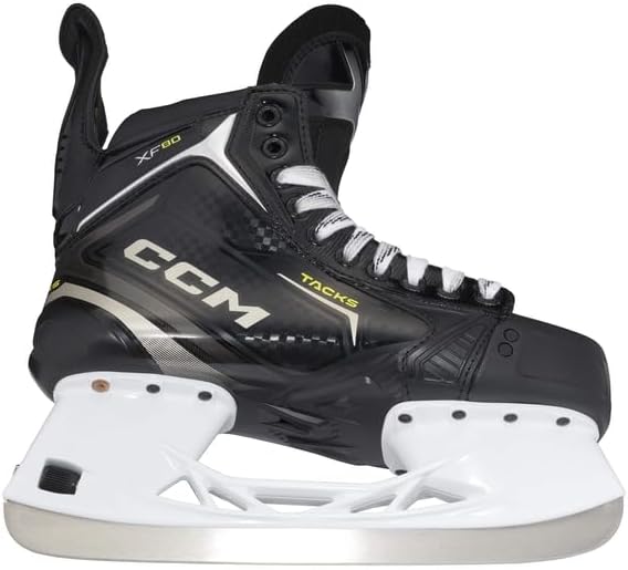ONE PIECE SHOE Players get more direct energy transfer and a tighter fit for faster steps. 3D texturing and chrome finishes provide added design and quality. 160 cm Thermoformable core for great skating performance. HD MICROFIBRE High wear resistance with additional EVA layer for fit and comfort right into the shoe. FLEX TENDON 3.0 Improved range of motion allows greater stretch when skating for more speed. Improved design provides more protection and grip. MEMORY FOAM WITH SEAMLESS COMFORT Multi-density foam pads with seamless comfort finish anatomically surround your foot for ultimate fit and comfort. METATOMIC TRITECH 7mm black felt, foam core reinforcement and moulded Lacebite protection beautifully surround your foot for superior fit and comfort. Moulded CCM ORTHOLITE Ultra lightweight, molded fit and enhanced comfort. SPEEDBLADE XS CCM quick release holder with metal pin blade locking system XS PRO STAINLESS Higher blade (+2mm compared to XS1) gives you better angles of attack, while the stainless steel provides a durable edge, all for improved skating performance