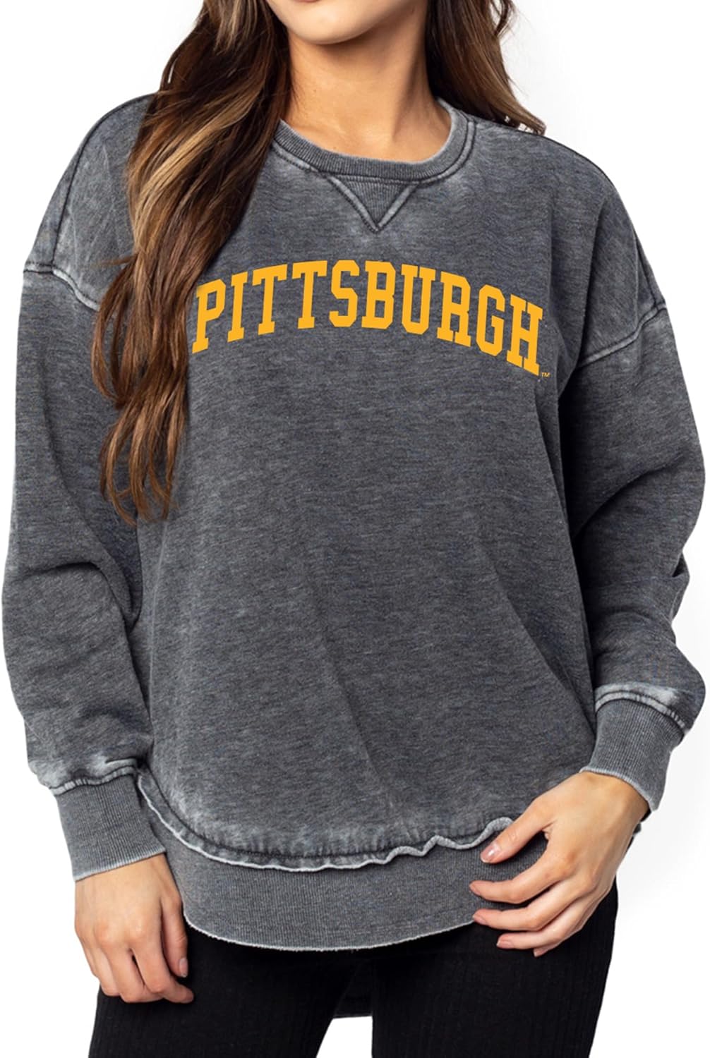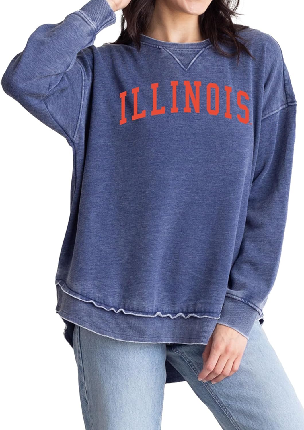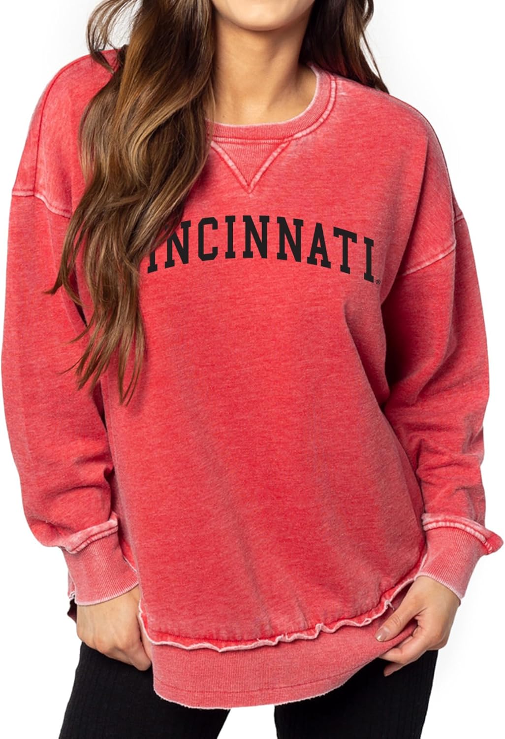 Look and feel fabulous on gameday in our fan favorite burnout campus pullover. This style features dropped shoulders, decorative stitching along the crew neckline, and an officially licensed graphic to show lots of love for your favorite team. The hemline is longer in back which allows this tunic style to pair perfectly with leggings. The cozy burnout fleece is made of a 60% Cotton, 40% Polyester blend.
