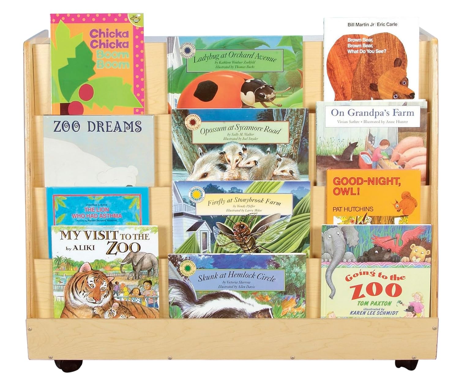 Childcraft's double-sided, rolling unit is perfect to separate classrooms into different learning centers. One side is a library featuring four shelves, perfect for book display. The other side is a book browser with 3 pockets on top and 2 shelves below for storage. Low height gives you an unobstructed view across your entire classroom. And, because they're mobile, it's easy to change each center as needed. Assembled. 36"W x 20"D x 30";H.