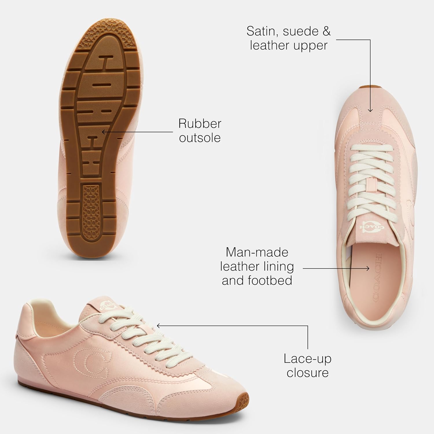A streamlined on-the-go sneaker, this soft suede design features tonal stitching and laces. Accented with our perforated Signature, the sleek flat silhouette is finished with a lightweight EVA rubber outsole. Suede and leather upper, man-made leather lining and footbed, rubber and EVA outsole, lace-up closure