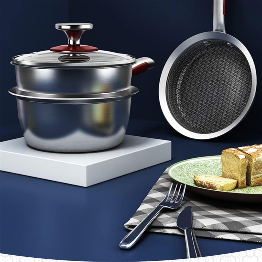 Time-saving Cleaning: Enjoy effortless cooking and cleaning with exceptional performance and ultra-nonstick coating. Product name: Cookware Set Material: Stainless steel Package includes: 1 set of pots and pans (other products not included) Easy Cleaning: While our cookware is dishwasher-safe for your convenience, we highly recommend handwashing. A simple rinse or quick wipe effortlessly removes any residue, ensuring your cookware remains spotless and maintains its pristine condition with ease.
