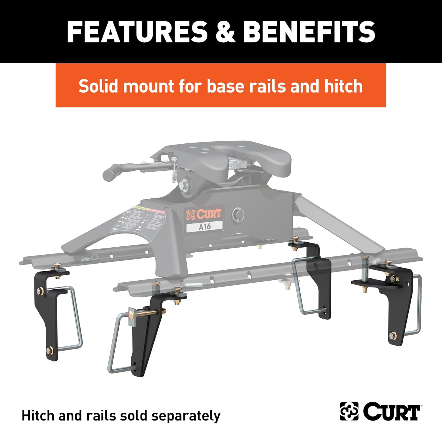 When you purchase a 5th wheel trailer hitch, you expect it to be capable of towing your RV, flatbed or whatever other 5th wheel trailer you own. While a 5th wheel hitch does offer an impressive amount of towing strength, it cannot get far without the proper installation equipment. Engineered for specific makes and models, CURT custom 5th wheel brackets provide the ideal solution for complementing the power of your 5th wheel trailer hitch. A custom 5th wheel bracket features a shape that contours to the frame of your truck and uses pre-drilled holes in the frame wherever possible to make installation quick and easy. Depending on your model of pickup truck, they also reduce or eliminate the need for drilling. These particular custom 5th wheel brackets offer a custom fit for certain model years of the Ram 2500 and 3500 (see application info to verify fitment). Finished in a durable liquid A-coat, CURT custom 5th wheel brackets are made to last. They include all necessary mounting hardware and are designed to be used in conjunction with CURT industry-standard 5th wheel base rails #16104 or #16204 (base rails sold separately).