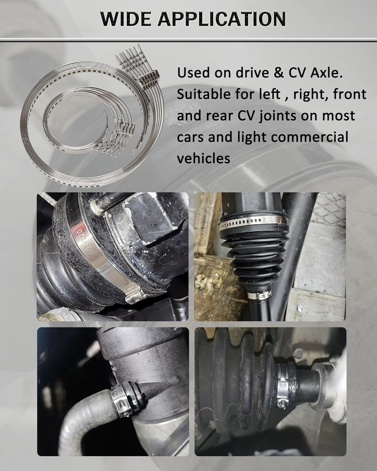 • WIDE APPLICATION: Used on drive & CV Axle, work well with your cv boot kit such as atv's and utv's cv boots; A perfect replacement for your loose or broken cv boot clamp
