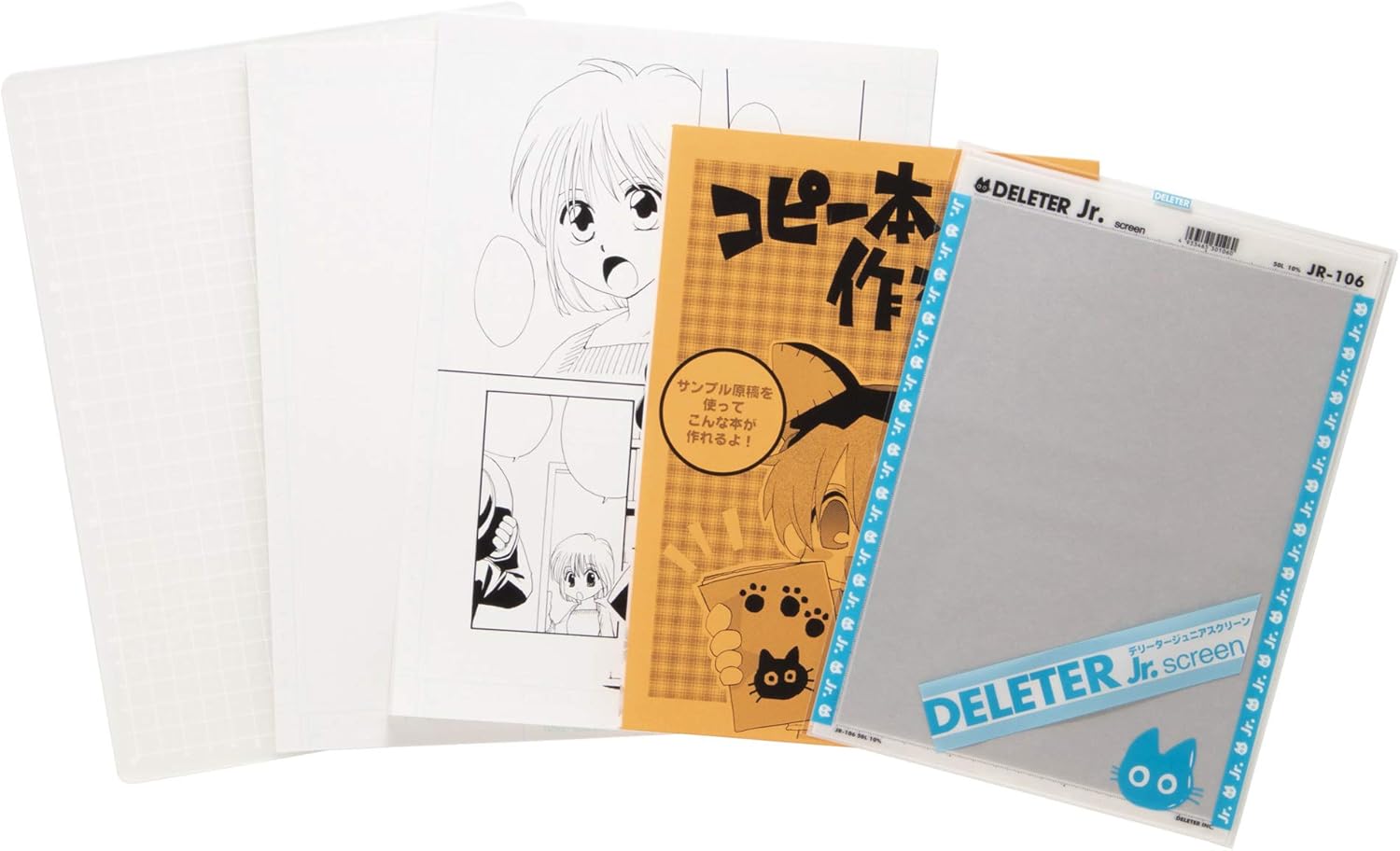 [Contents] Clear file case, Booklet "How to make copy", Manga Manuscript paper (Frame) ~ 4 sheets, Manga original paper A4 with memory ~ 6, Jr screen ~ 5, Tone spatula, tone knife, Neopico line 0.05, Neopico 2 Y-600 Black, Manga Technique vol.5, Trial pen set, brush, Deleter black ~ 1, white ~ 1, Cutting mat (A4 white), DELETER product catalog. DELETER INC. is a manufacturer of comic painting materials and designing supplies founded in Japan in 1984. "Tone ¦" selling since 1987 is also used by many professional cartoonists. DELETER INC. has extensive experience in publishing posting magazines, sponsoring exhibitions in and outside the country. We sell a variety of goods to 500 stores in Japan and 65 countries abroad, mainly paint shops. ¦ Tone ... Product name: DELETER Screen. A special sheet printed with various patterns. It is often used in expressing colors and textures of objects with black and white manga. There are about 700 types of DELETER tones. They are often used for patterns such as clothes, backgrounds, clouds, ocean expressions, and expressions of atmosphere and effects in cartoons. [Products] Marker / Drawing Pen, DELETER Screen, DELETER Junior Screen, Paper for Manga, Tone (Set for Beginners), Pen Tip, Ink, Comic Painting Material, Collaboration Comic Item. [DELETER Screen] The DELETER screen colors works in various scenes. It can be used widely from a pro to an amateur. [Manga manuscript paper] DELETER manuscript paper can be chosen according to size and usage. DELETER's manuscript paper is a fine quality paper that is hard to get pen sticky and hard to blur ink. [Tone for beginners / Manga introductory kit for Beginners] The manga tool is the best set for those who are planning to draw manga from now on.