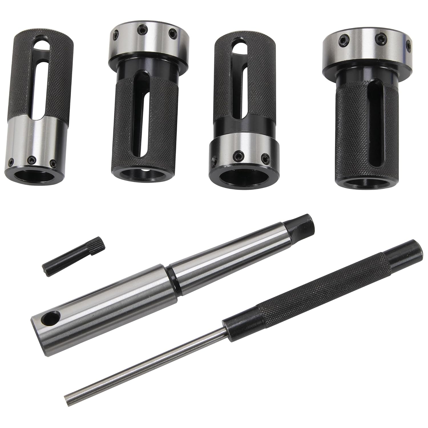 This industrial die holder goes in the tailstock of the mini lathe, or any other lathe with a 2 Morse taper tailstock.The set includes tapered shank, pin punch, and 13/16", 1", 1-5/16" & 1-1/2" die holders.This lathe die holder tool does not work with hexagonal dies. Hexagonal dies are not made for creating new threads, they are for maintenance work.
