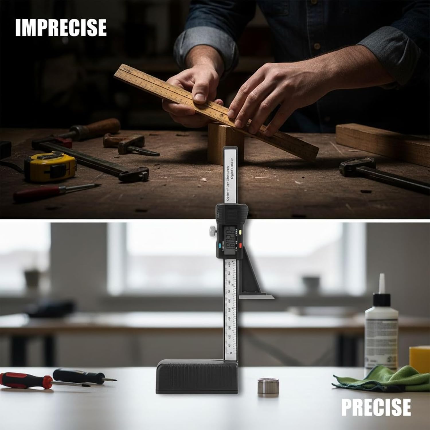 Color: Black Material: Carbon Fiber Composite,Plastic Size: Digital Height Gauge: 13.4 x 7.1 x 1.2 in / 34 x 18 x 3 cm Package Includes: 1 x Digital Height Gauge Note: - Please refer to the measurement. Tiny measuring error is allowable in normal range. - There might be a little color difference due to the monitor, camera or other factors, please refer to the physical item.