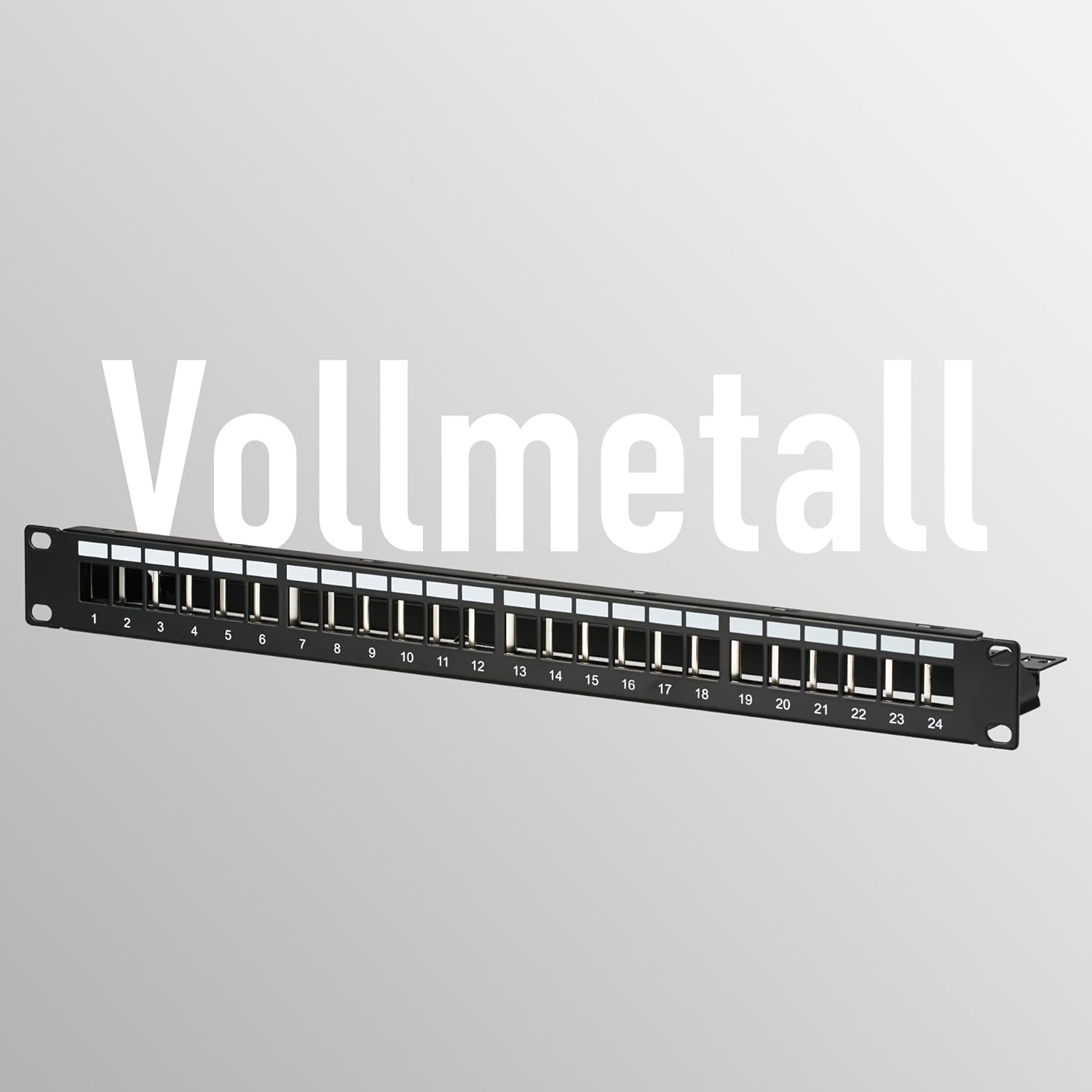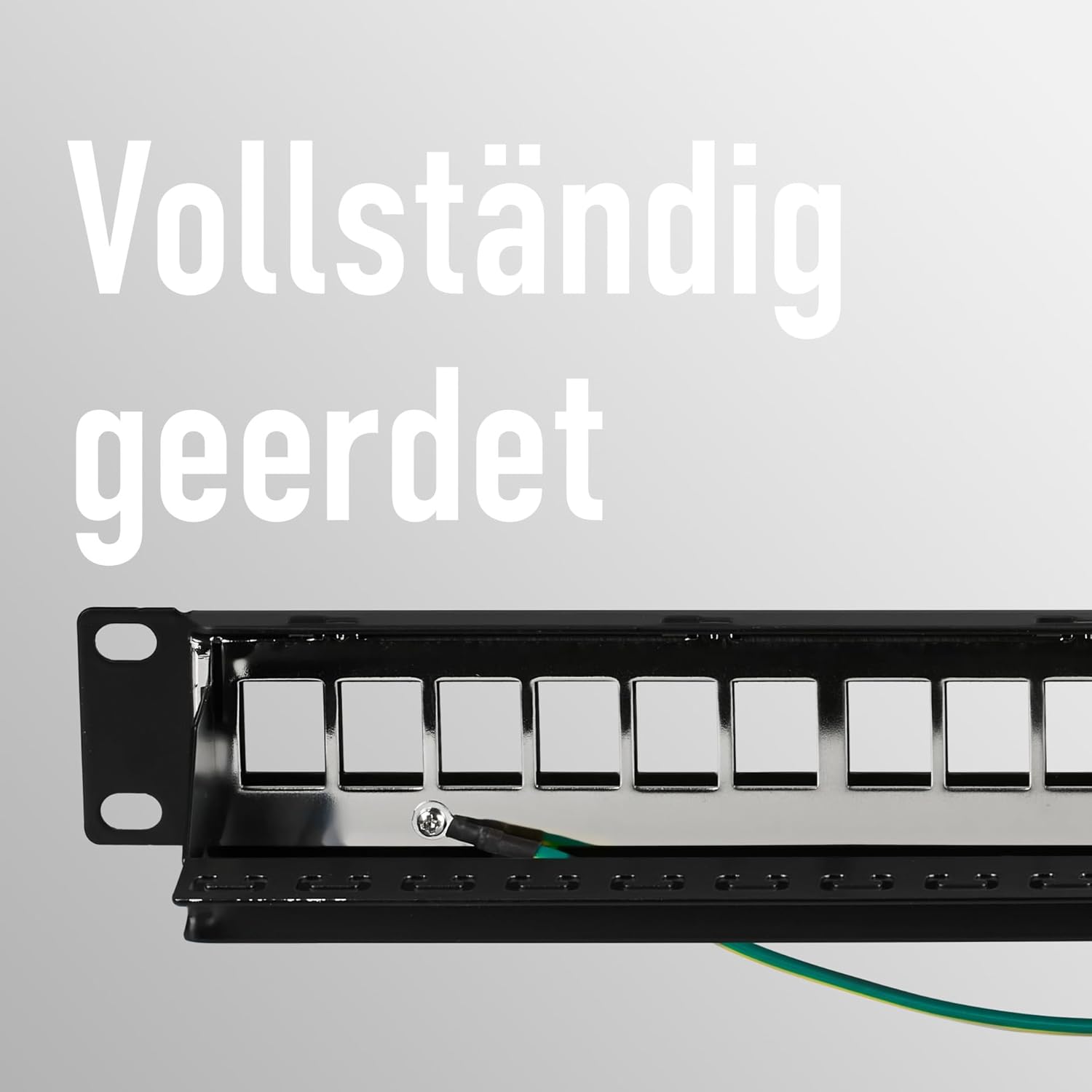 EFB-Elektronik Patch panel black: well connected. The black 19 inch patch panel from EFB-Elektronik is high-quality and modular. It can accommodate an individual, structured assembly of up to 24 keystone modules. The individual modules can be mounted by snapping into place without any tools. The ports of the black EFB-Elektronik patch panel are numbered accordingly. The black patch panel panel fits perfectly into a black 19" network, server or device cabinet where it only occupies one height unit. Thanks to two mounting holes on each side, the installation of the patch panel in the server cabinet is very easy. The EFB-Elektronik 19 inch patch panel is made of sturdy sheet steel, the surfaces are robust and durable thanks to a scratch-resistant black powder coating. Structured cabling with black patch panels from EFB-Elektronik A patch panel groups and structures keystone modules used to connect and manage incoming and outgoing LAN cables. A patch panel can organize a large number of cables and allows flexible connectivity with network hardware. Patch panels can help any business save a lot of time and effort in network infrastructure. With the robust and high-quality patch panels from EFB-Elektronik you are on the safe side. Patch panels are none other than Keystone module carriers, but offer many advantages in the network: flexibility and scalability The network can grow and change as needed without the need to replace expensive and labor-intensive channels. Save space By managing different port densities and speeds in a single patch panel, you save valuable server cabinet space and help reduce data center costs. Cost-effectiveness High density and easy maintenance ensure low initial investments. With a patch panel, you only need to buy the devices you need right away, but still have room for future expansions. Easy maintenance The advantage of a patch panel is that manual monitoring, testing, switching, routing and other maintenance can be done quickly.
