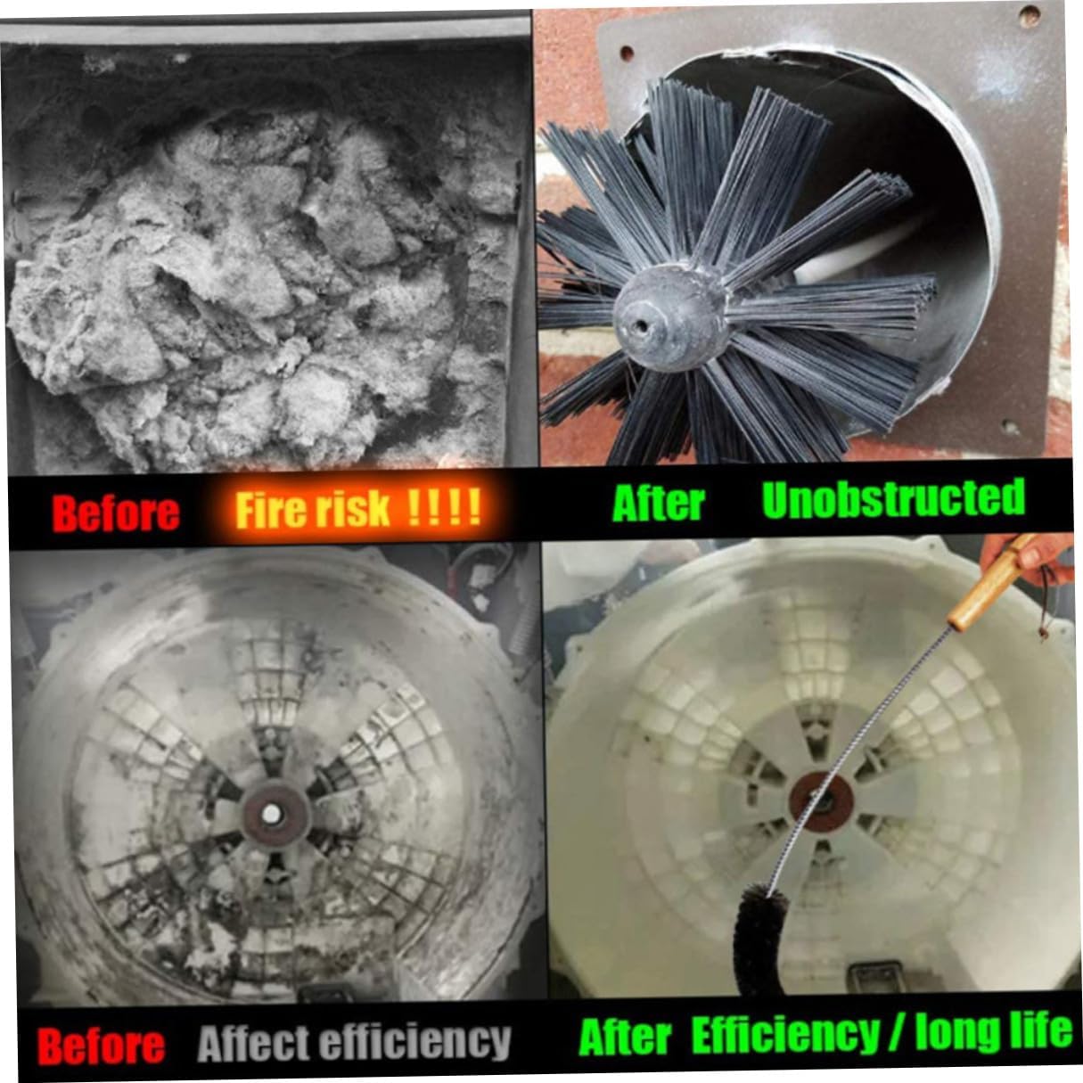 Package Include 4 x rods 1 x brush head Features -Product Info:Cleaning brush - Material: Nylon, galvanized iron. - Size: 61.00X2.00X2.00cm/23.97X0.79X0.79inch. - The rods are flexible which can perfectly get through those tough flue bends chimney sweep kit chimney brush. - - It can be used for cleaning the inner wall of such as dryers and chimney chimney tools for fireplace. - , you can buy this practical product at an dryer vent cleaner brush. - The nylon brush rod can bend and not break, making it easy for you to operate dryer lint remover. - This chimney cleaning brush is made of environmentally friendly materials for durability.Goods Descriptionchimney cleaning brush and rods If you've been looking for a dryer vent cleaning brush set, then your search is over! That's because our product can provide great help in removing lint and dust buildup in your dryer vent, duct and exhaust port, working performance and reduce fire risk