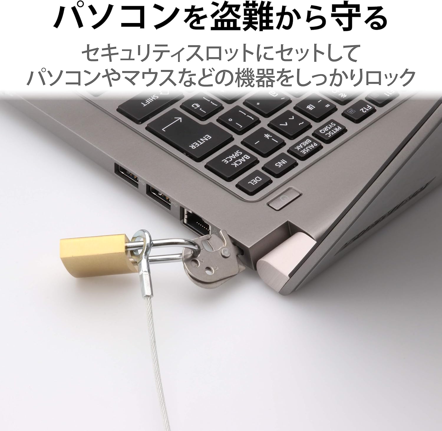 Specifications: ■ Product Type: Padlock + Wire ■ Compatible Slot Size: Multi (3 x 7 mm slots (vertical and horizontal), 3 x 7 mm slot, 2.5 x 6 mm slot, 3.2 x 4.5 mm slot) ■Other: ※Align the holes on the multi-lock plate to the hole position that corresponds to your computer, and secure it with the wires and padlock. Even though the slot size is compatible, there may be cases where the internal depth of the slot is not supported depending on the model. ■ Normally, Master, Uniform, Other: Normal ■ Set Includes: Padlock (ESL-NK), Keys x 2, Multi Lock Parts (ESL-RPA), Wire ■ Dimensions: Padlock: Width 1.0 x Depth 0.4 x Height 2.0 inches (25 x 11 x 51 mm) (Hook Thickness 0.1 inches (3.2 mm), Multi Lock Parts: Width 0.7 x Depth 1.3 x Height 1.3 inches (18 x 3.■ Material: SUS, copper alloy ■ Wire length: 1.7m ■ Wire thickness: 0.09 in (2.2 mm) ■ Wire Material: Steel + Soft PVC Coating ■ Wire Color: Silver ■ Weight: Approx. 3.9 oz (86 g). 【Description】 ■ This is a padlock type multi-security wire lock that attaches to a security slot to protect your computer or tablet from theft. ■ Comes with multi-locking parts that support 4 types of security slots. ■ Align the hole position for your computer with the hole on the multi-lock plate and fasten it with the wire to prevent theft. ■ You can continue using it when you buy a computer. ■ Secure your mouse or numeric key cable through the multi-lock part to prevent theft at the same time. ■ The wire is coated to prevent scratches on your desk or computer. ■ We have a wide variety of keys depending on the usage environment. ■ Manages all different keys individually Each computer has a different key for each other to manage your keys individually. ※ If you order more than one, you may receive the same key number depending on the number of orders. Product inquiries Elecom General Information Center TEL. 0570-084-465 FAX. 0570-050-012 Reception Time / 10:00 - 19:00 24/7