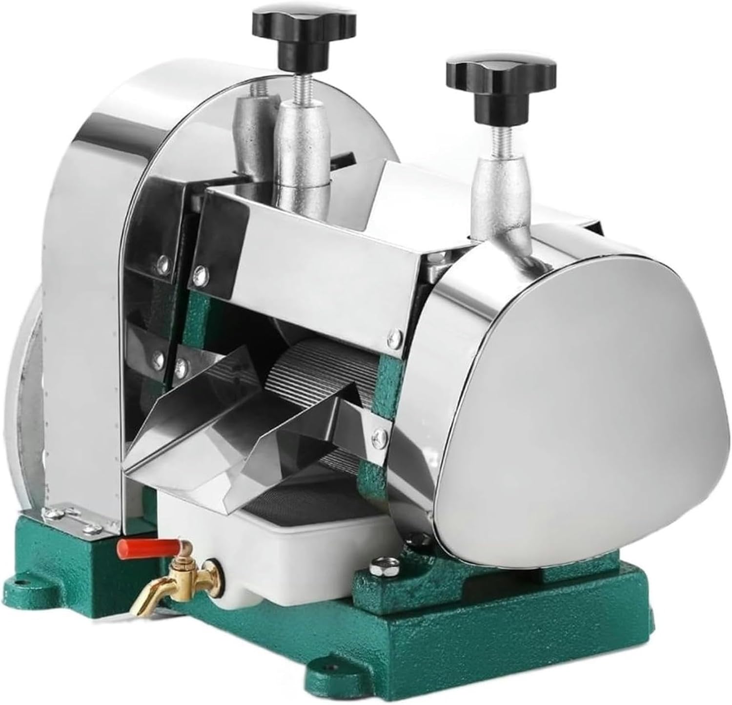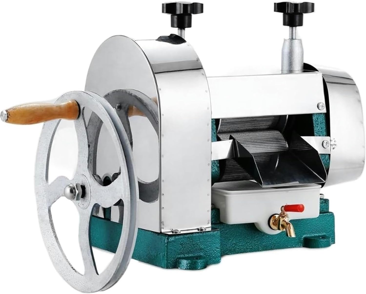 1. Pure copper wire engine, great power, improves the resistance to wear of the bearing.2. Stainless steel body, beautiful atmosphere.3. Automatic adjustment according to the thickness of the sugarcane, automatically adjust the width of the wheel, intelligent squeezed.4. Super silent, low noise and more comfortable operation.Characteristics.Stainless steel housing, beautiful appearance..All parts touched with food are 304 stainless steel.Beautiful form.Easy operation.Low investment and high performance juice.Well for restaurant or domestic use.Technical.Condition: New.Power: Manual.Housing material and inner rollers Stainless steel 304The cast iron base with paint handle wheelJuice extraction rate 60-80)/100.Roller thickness: 0.2 "(5 mm).It adapts to sugar reeds up to 2.0 in thick..Parameter: Size: 16.5 "x 12.6" x 13.7 "(42x32x35cm).Production: 50 kg/h.Weight: 65 pounds/29.48packaging.1 Sugar and ginger cane polishing..1 tap..1 knife to peel.