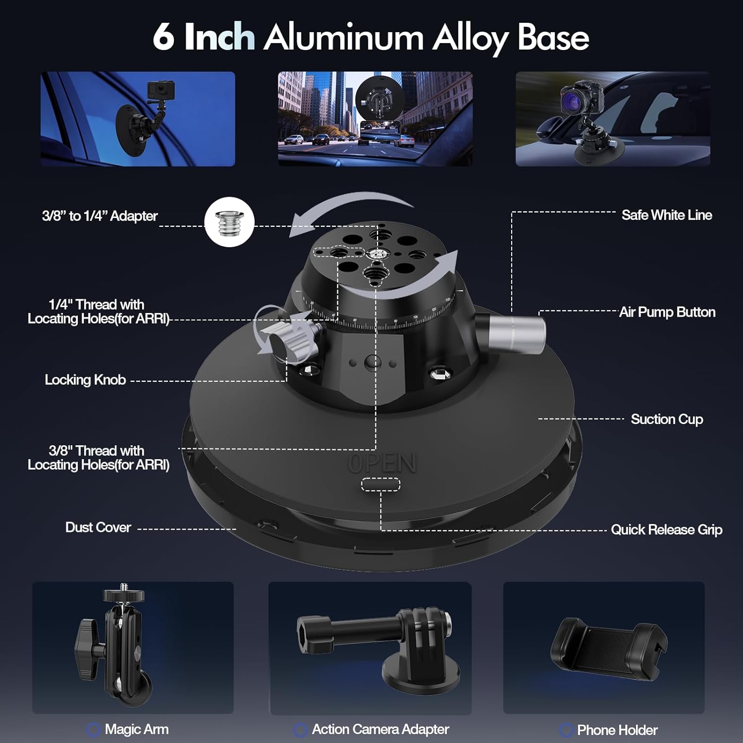 | BuiltIn Media | Ball Head Magic Arm, Camera Suction Cup Mount |