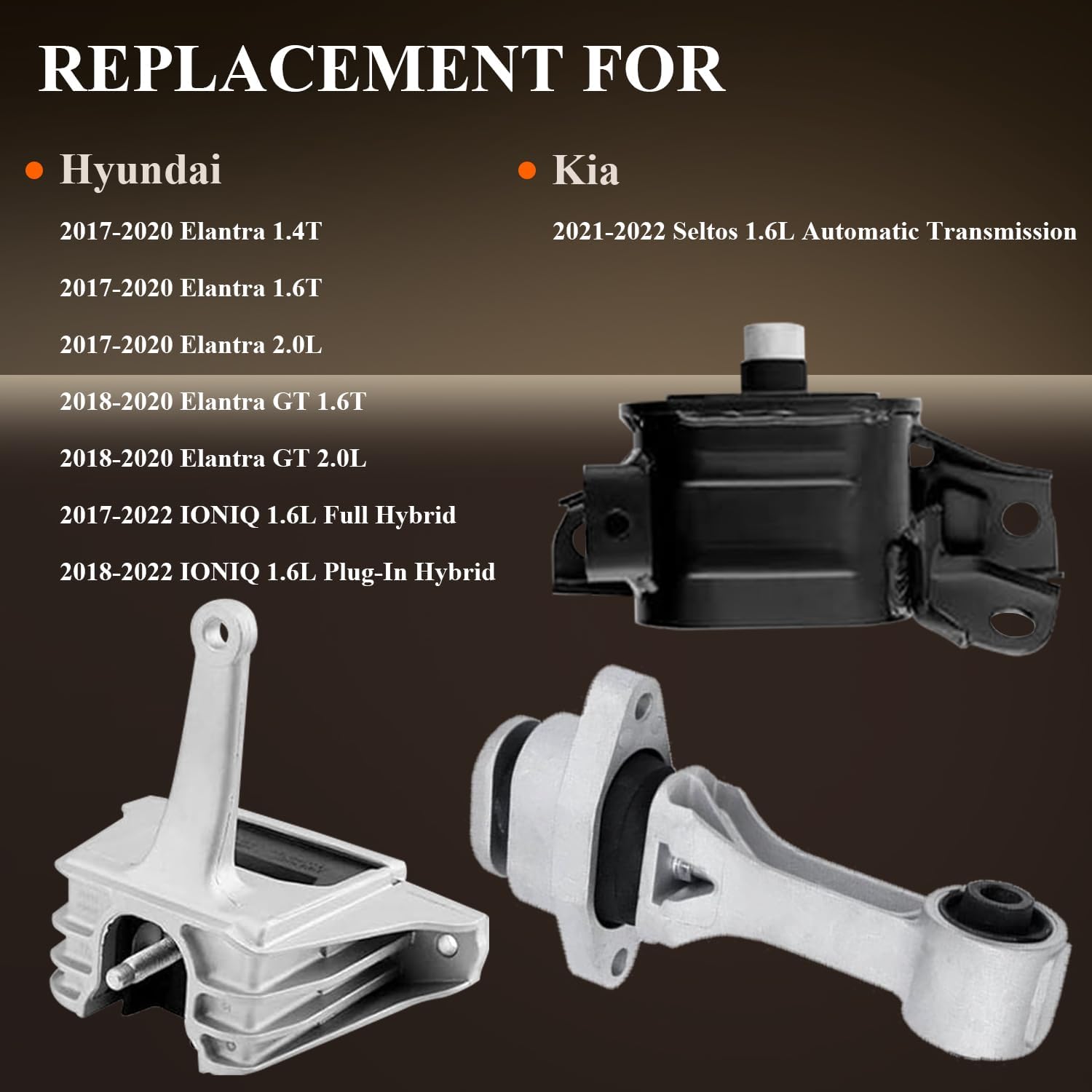 | Included Components | 1* Motor Mount, 1* Torque Strut Mount, 1* Transmission Mount, 3 * Engine Motor Mount |