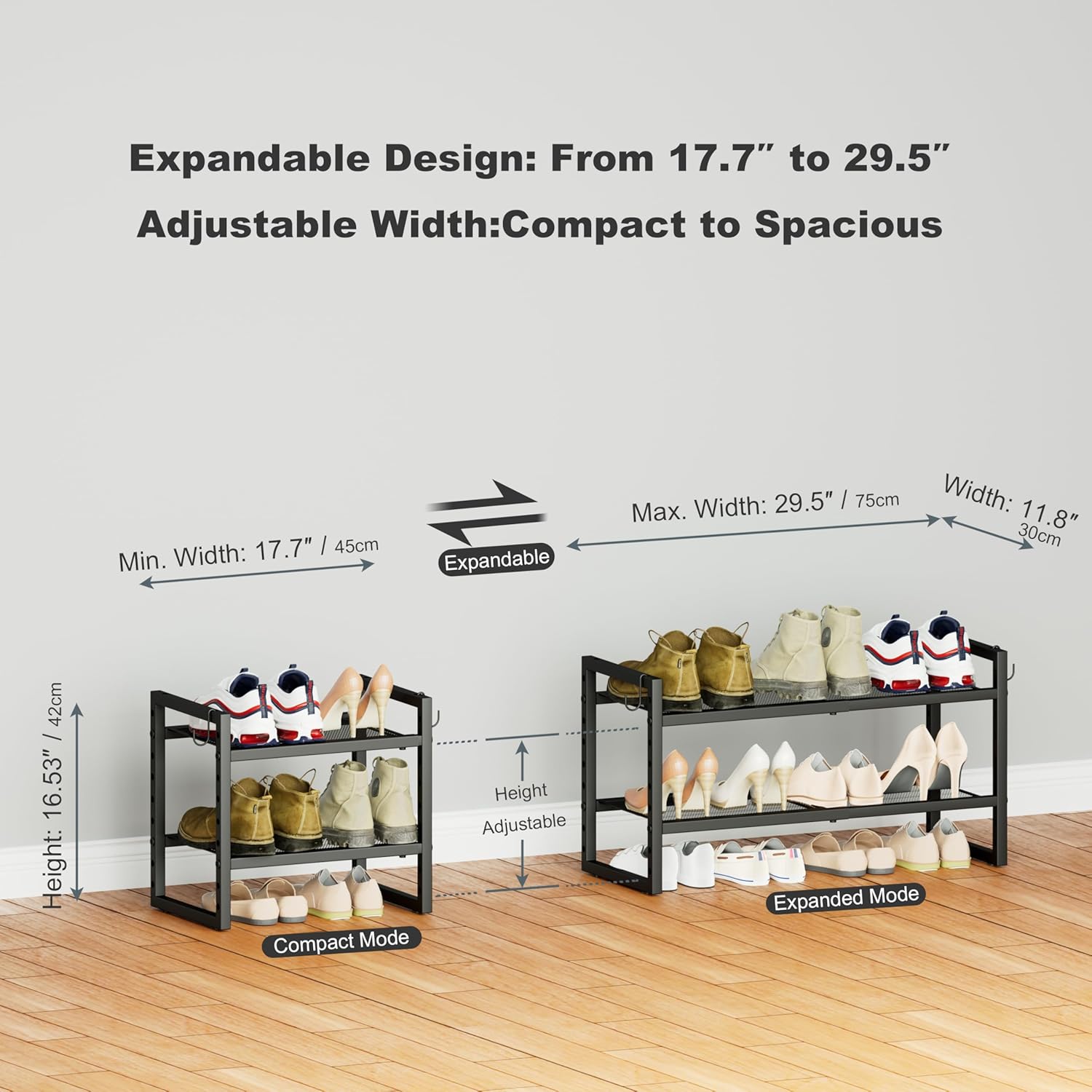 | Set Name | 2-shelf expandable shoe rack set |