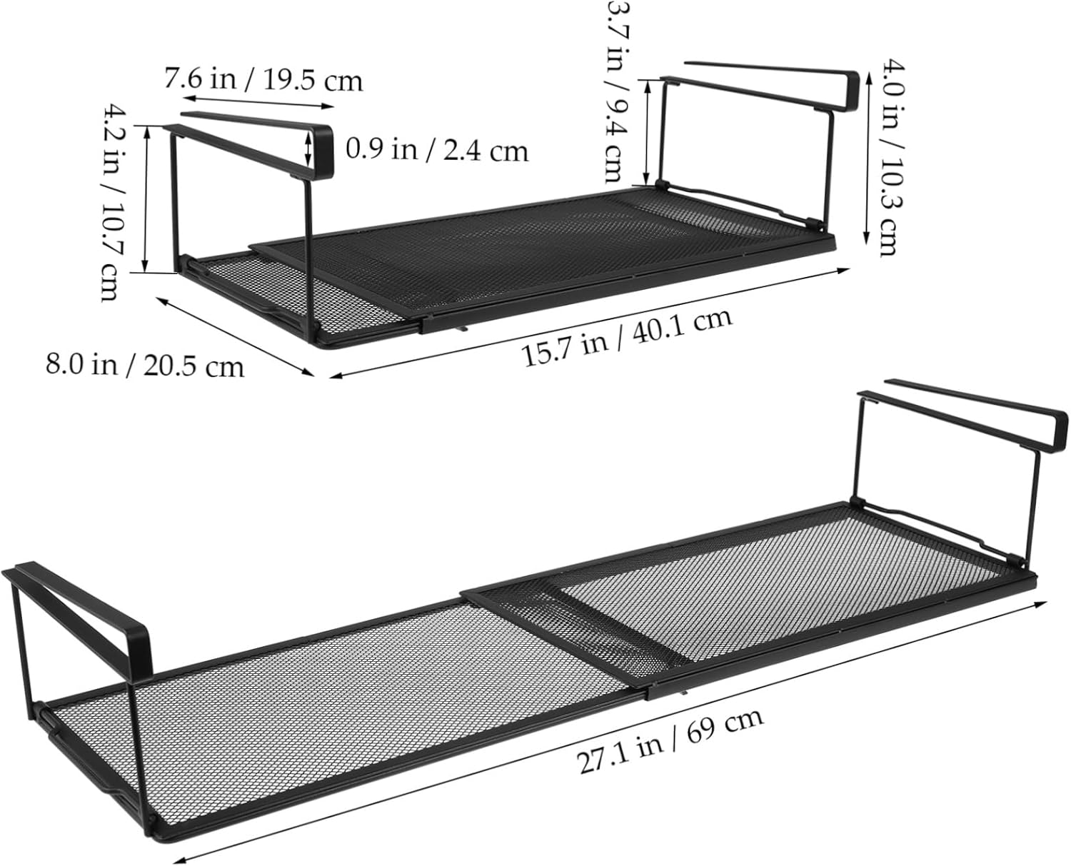 Package List 1 x under shelf rack Features -Size:38.50X21.00X13.50cm/15.13X8.25X5.31in Kitchen Hanging Rack -Stylish design: With its sleek and modern design, the rack is a stylish addition to any home, adding both functionality and aesthetic appeal to your space Under Shelf Storage Rack -Color:Black Under Shelf Basket -No drilling required: The under shelf storage rack is designed to fit under any shelf or cabinet without the need for drilling or installation Cabinet Organizer -Material:Metal Under Shelf Rack -Versatile application: The under shelf hanging rack can be used in any the house, can help your home stay organized and space-efficient Slide In Storage Rack -Expandable feature: The under shelf rack can be easily adjusted to fit your specific needs, making it ideal for storing kitchen utensils, toiletries, shoes, etc Under Shelving Basket - construction: Made of sturdy metal, the under shelf storage holder keeps your items secure and easily accessible Kitchen OrganizerGoods DescriptionUnder Shelving Organizer Made from metal, it features an expandable design that fits standard shelves, making it ideal for storing kitchenware, pantry items, cleaning supplies, and more.Kitchen Tool Holder This versatile under shelf storage rack is designed to maximize space without the need for drilling.Kitchen Hanging Rack Easy to set up and adjust as needed