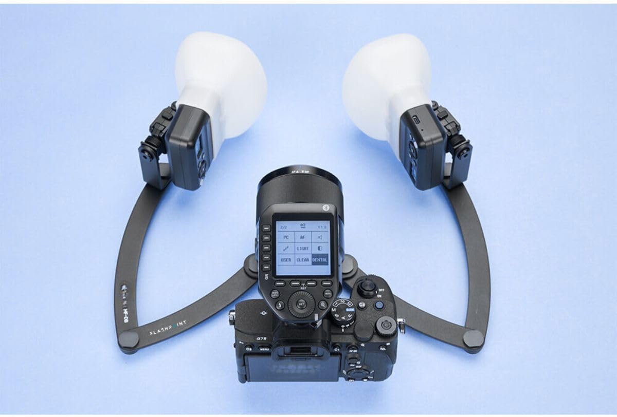 Find the perfect solution for your dental photography needs with the MF12-DK1 Dental Macro Flash 2-Light Kit. This comprehensive kit, specifically designed for macro photography, is equipped with two high-quality MF12 flash heads that can be mounted either directly on your camera or on a separate bracket, offering you the versatility to adjust angles and distances for optimal lighting.The kit is seamlessly compatible with Sony cameras and lenses, eliminating any compatibility concerns. It includes a dedicated Xpro IIS+ transmitter, a unique dental flash trigger with a specialized Dental Mode. This feature automatically adjusts the flash output, minimizing interference and optimizing your settings for dental photography. A one-touch button on the transmitter activates the modeling light, allowing you to preview the lighting effect before capturing your shot.Included in the kit are two durable silicone diffusers designed to soften and diffuse the light from the flashes, creating a more natural and realistic look. These diffusers are perfect for illuminating hard-to-reach areas in the mouth, such as the back teeth and gums, and are color-temperature optimized for dental photography, ensuring your photos have accurate and pleasing colors.The optional bracket provides additional flexibility and precision over your lighting. Its two extendable arms can hold the flash heads and adjust the gap between them. The flash heads can also rotate up to 180 degrees on the bracket, allowing you to position them as close as possible to the lens, an essential feature for lighting up difficult-to-photograph areas like the posterior molar region.The integrated rechargeable lithium battery in the flash heads can support up to 500 full-power flashes and boasts a fast recycling time of 0.01-1.7 seconds. Recharging is easy with a type-C cable, making the process both convenient and efficient.Finally, the kit includes a durable storage case designed for quality and space efficiency. This case offers a neat and organized way to store and transport your dental photography equipment, protecting it from dust, moisture, and damage. In summary, the MF12-DK1 Dental Macro Flash 2-Light Kit is a reliable, versatile, and affordable solution for professional dental photography. With its powerful flashes, dedicated transmitter, effective diffusers, adjustable bracket, durable battery, and protective case, this kit is set to take your dental photography to new heights.
