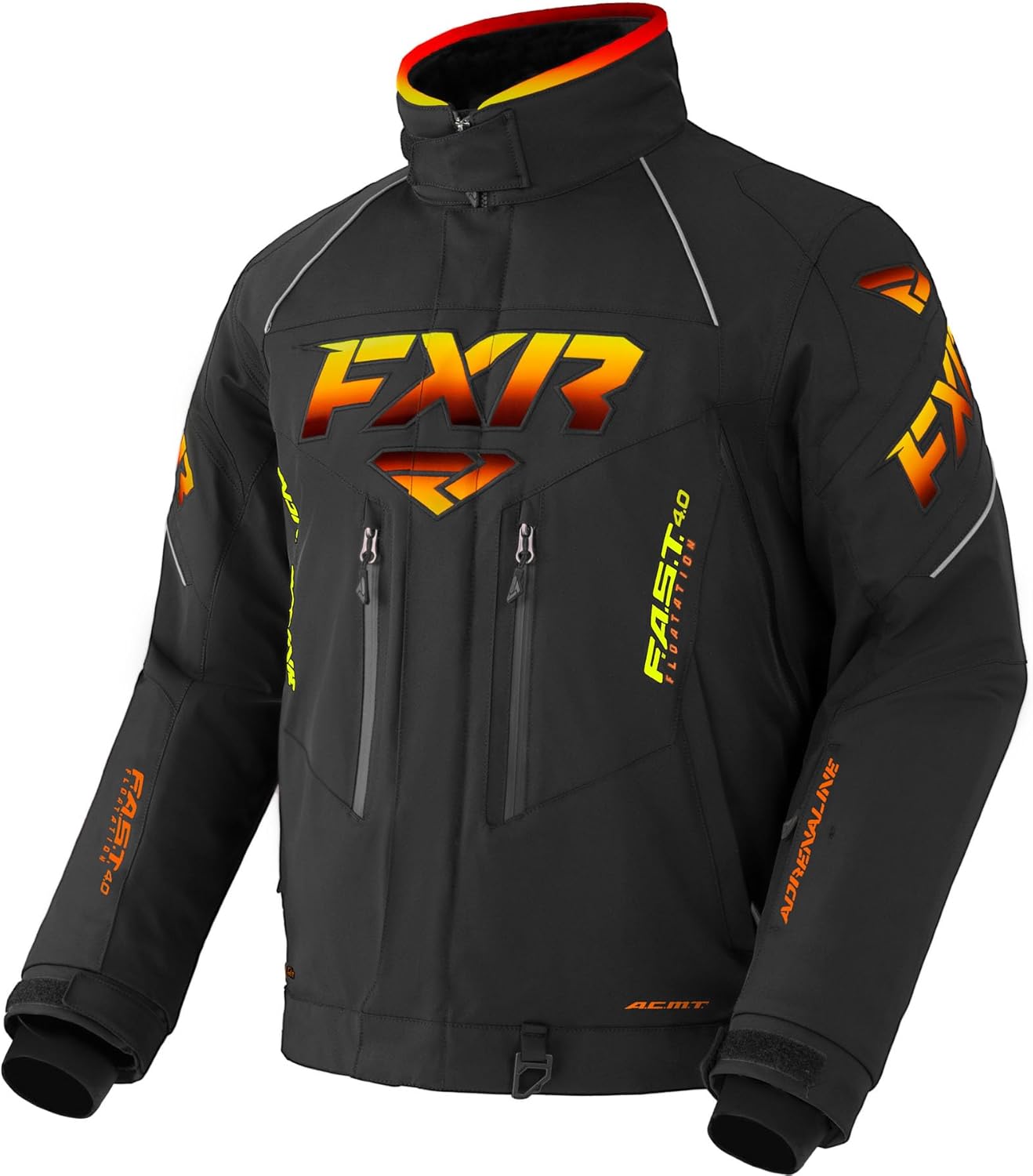 The FXR Men's Adrenaline Jacket is a technical snowmobile jacket engineered for extreme winter riding. Combining A.C.M.T. construction with F.A.S.T. 4.0 technology, it delivers waterproof protection and thermal management for aggressive trail and backcountry conditions. The jacket features a 20,000mm waterproof rating with 8,000g/m² breathability and HydrX Pro laminate for moisture protection in deep powder and freezing precipitation. The seam-sealed A.C.M.T. lining system blocks water entry while the Omni-Stretch nylon/spandex shell provides flexibility. F.A.S.T. 4.0 insulation delivers 150g of warmth in the outer shell body, perforated at vents for improved breathability. A removable FXR Thermal Dry liner with 120g Thermal Flex fill creates a dual-layer system for temperature adaptability. The FXR Dry Vent system includes snowproof, moisture-resistant chest and side body vents for heat regulation. YKK AquaGuard front zipper and heavy-duty #8 waterproof zippers at chest, side vent, and back pockets seal out the elements. YKK zippers secure hand pockets. Built for riders pushing through mountain passes and wooded trails, the jacket includes 360-degree 3M Scotchlite reflective elements for visibility, an integrated goggle wipe chamois, and multiple storage pockets. Adjustable windskirt, collar, hem, and cuffs with lycra inner extensions block wind entry. A cold stop front placket with magnetic/snap closure system provides additional protection. Key Features: A.C.M.T. construction – 20,000mm waterproof / 8,000g/m² breathability rating F.A.S.T. 4.0 insulation – 150g in outer shell, perforated at vents for airflow Removable FXR Thermal Dry liner with 120g Thermal Flex fill for adaptability Omni-Stretch nylon/spandex shell with HydrX Pro laminate and seam-sealed lining YKK AquaGuard front zipper and heavy-duty #8 waterproof zippers at pockets FXR Dry Vent system – Snowproof chest and side body vents for heat management