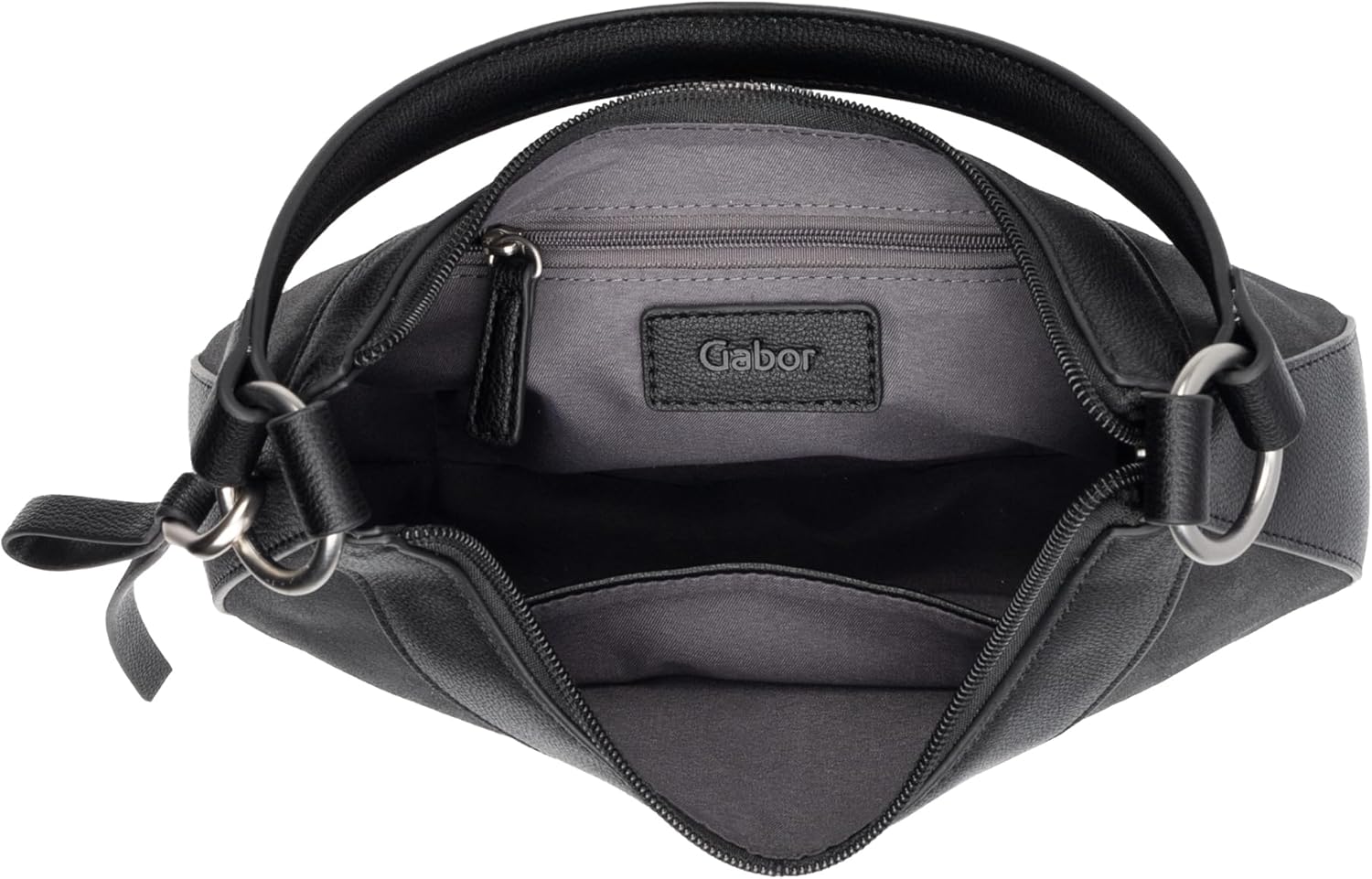 With the round Selva bag you are always stylish on the go. A special highlight is the material combination of faux suede and smooth faux leather as well as the geometric lobster clasp. Medium pouch pocket with zip main compartment. 1 rear zip pocket. 1 zip pocket, 1 mobile phone pocket, 1 slip pocket inside. 1 handle, 1 removable, adjustable shoulder strap, 1 removable pendant.