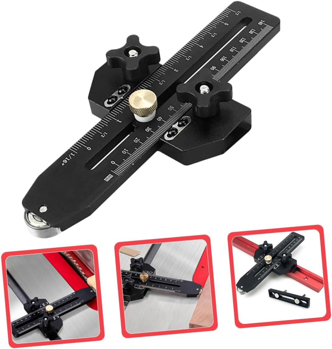 Package List 1 set Table saw positioner clamp (1pcs Positioner, 1pcs mounting base , 2pcs mounting screw , 2pcs adjusting wrench ) Features -Versatile use: equipped with two sizes of mounting sliders, this table saw guide is compatible with most standard table Saw, planers, and band Saw thin rip jig -Size:23.00X9.90X2.20cm/9.04X3.89X0.86in band saw router jig -Quick and clear adjustments: features clear measurement markings and easy to grip knobs for secure locking. scales in millimeters and inches allow for quick setup and adjustment for precise repetitive cuts extended thin rip jig table saw - and stable: constructed from anodized aluminum alloy with a rigid metal structure, it securely holds the workpiece, eliminating and ensuring cutting while preventing finger injuries works with table saw router -Material:Aluminum Alloy extended version tools for men -Accurate positioning: helps woodworkers achieve precise cuts on thin and narrow boards, enhancing efficiency and providing a working environment woodworking jigs -Color:Black table Saw JigGoods Information and fast ripping guide Its compatibility with router tables and band Saw adds to its functionality, making it a versatile addition to your tool collection.table saw thin rip jig guide for cutting Achieve and fast ripping with this table saw accessory.thin rip jigs The ripping guide rip jig is engineered to provide stability and control during cutting, reducing the risk of errors and accidents