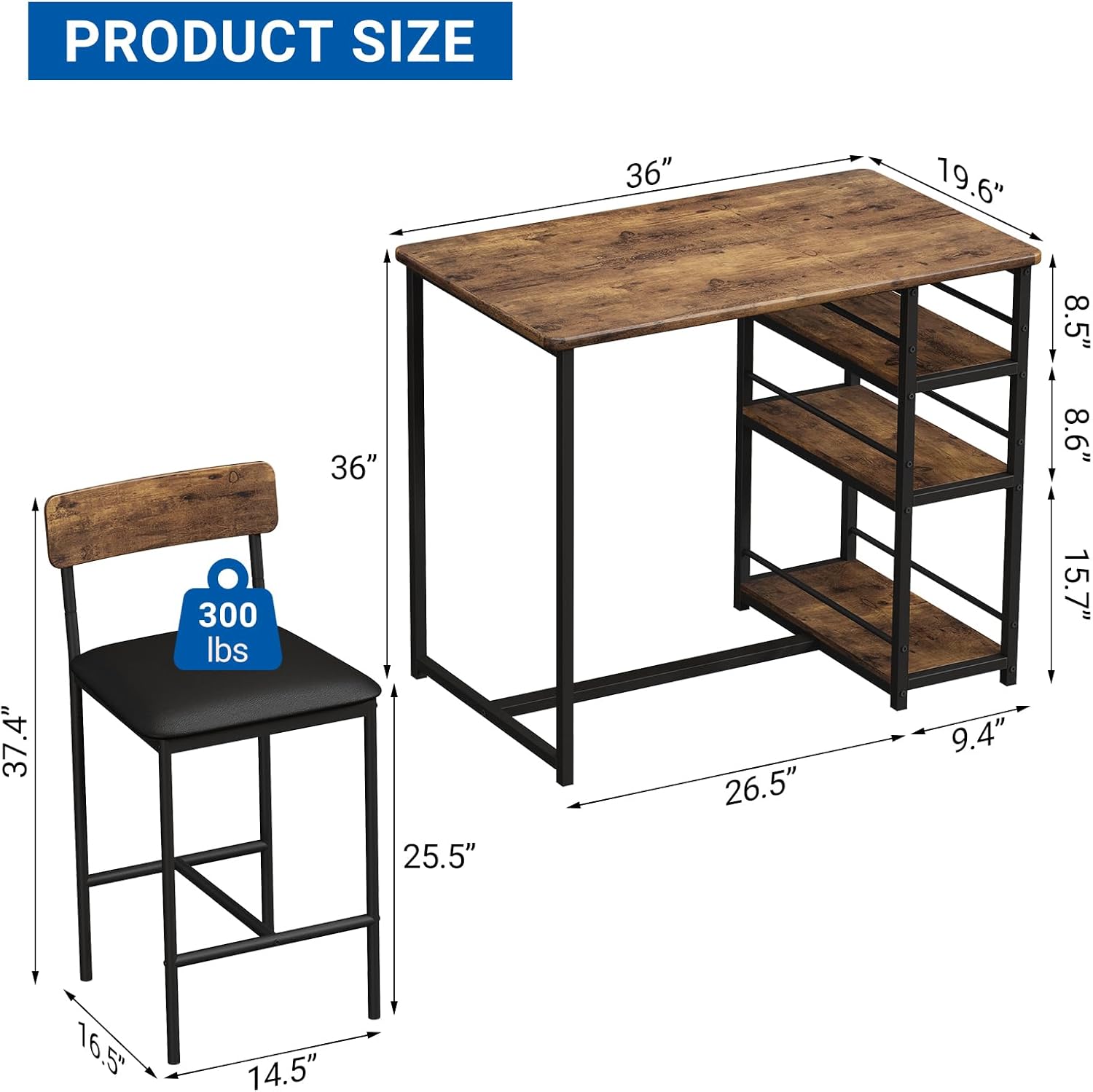 • UNPARALLELED DURABILITY: This kitchen table set is built to last, with a strong metal frame that guarantees excellent stability and a longer service life. Made from high-grade MDF board and a thickened steel frame with reinforced pipe walls, this set is a reliable choice that will remain a cherished favorite for years to come. Each bar chair supports up to 300 LBS.