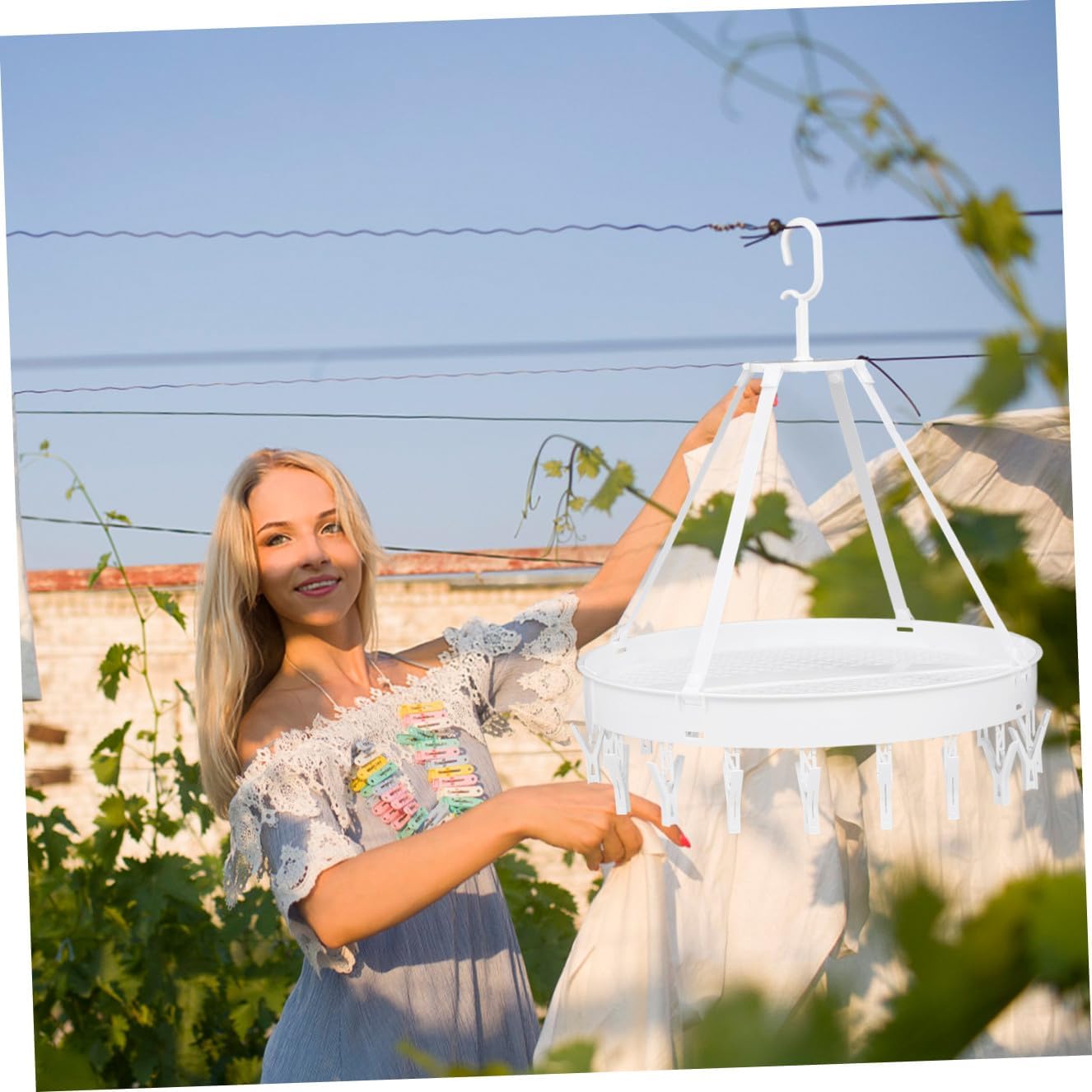 Package Include 1 18 x clips 4 x hanging lanyards Features -Product Info:Drying rack -Size: 50.00X50.00X40.00cm/19.65X19.65X15.72 in. -Material: PP -Color: White - Makes all clothespins easy to access, easy to hold and unload underwear drying hook. - Lightweight design, suitable for home, outdoor, camping, travel and vacation clothes drying rack. - These clothespin can hold and clip many small items, like socks, towels, etc underwear drying rack. - It can be folded and stored when not in use, saving more space clothes drying hook. - This laundry underwear hanger holds many small items in 1 hanger for multipurpose drying or storage socks drying hook.Goods Informationtowels drying hanger Foldable design, saves more space, bring more conveniences.socks drying rack The windproof hook prevents the clothes from falling.bras drying hook The clothes drying rack with 18 clips is made of material, which is safe and , not easy to break or deform, long serving life