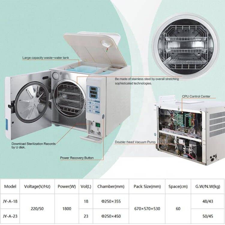 Model:JYN-23 Voltage(V/Hz) :110/60 Power(W):1800W Vol(L):23 Chamber(mm): Φ250×450 Pack Size(mm) 670×570×530 Space(cm):60 G.W/N.W(kg):50/45
