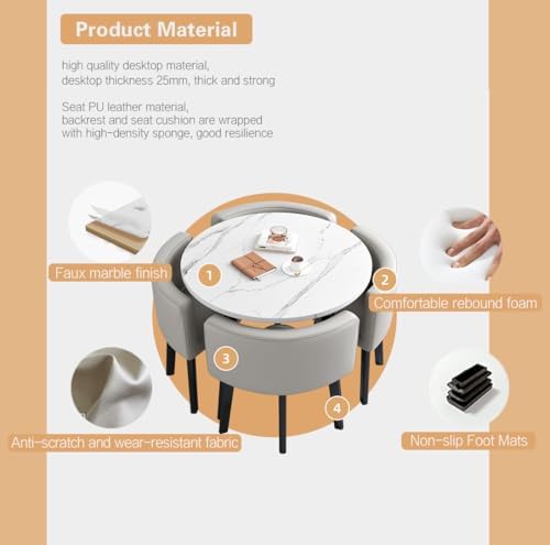 Elevate your space with our elegantly designed dining set, featuring a stunning imitation marble-textured desktop that adds a touch of sophistication to any environment. Crafted with a resilient sponge and an anti-abrasion pad, this set is not only visually appealing but also built to withstand daily use, making it perfect for both casual and formal settings. The durable metallic support structure ensures stability, while the sleek black wrought iron feet provide a modern flair. With a circular wood-based panel desktop measuring 1.5 inches in diameter, this dining set comfortably accommodates up to four people, making it an ideal choice for gatherings in coffee shops, restaurants, or even your own living room. Imagine enjoying a cup of coffee in your terrace or hosting a delightful brunch in your kitchen with friends and family. This versatile set is designed for various application scenarios, from lounges to negotiation rooms, making it a valuable addition to your home or business. Assembly is straightforward, and the set comes with one table and four chairs, allowing you to create an inviting atmosphere effortlessly. Please note that the product size may have a slight error margin of 1-2 cm, so refer to the actual size for precise measurements. Transform your dining experience with this stylish and functional furniture set that blends seamlessly into any decor, enhancing both comfort and aesthetics. Perfect for enhancing your daily routines or entertaining guests, this dining set is a must-have for anyone looking to elevate their space.