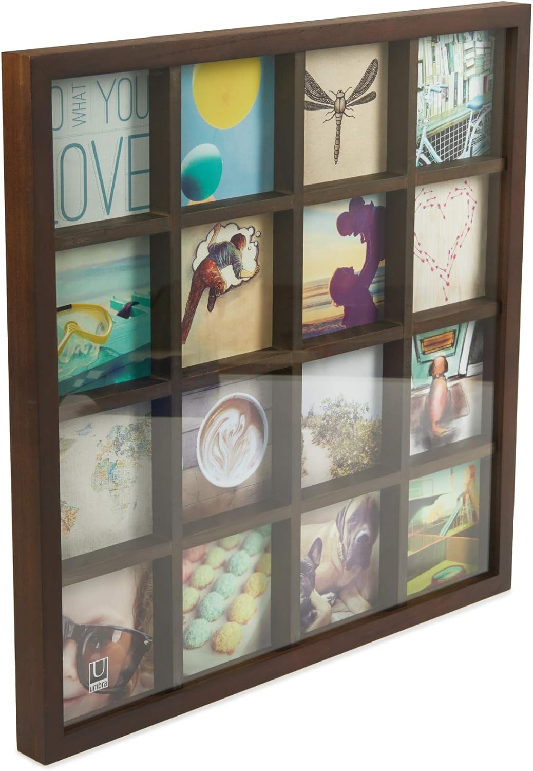 Grid art wall frame by Umbra displays your favorite photos and artwork in a modern, gallery-style setting. Frame is constructed of painted wood with a glass lens. Holds sixteen 4-inch-by-4-inch photos or artworks. Measures 17-inch by 17-inch by 1-1/4-Inch. Designed by sung Wook Park for Umbra- original, modern, casual, functional and affordable design for the home.